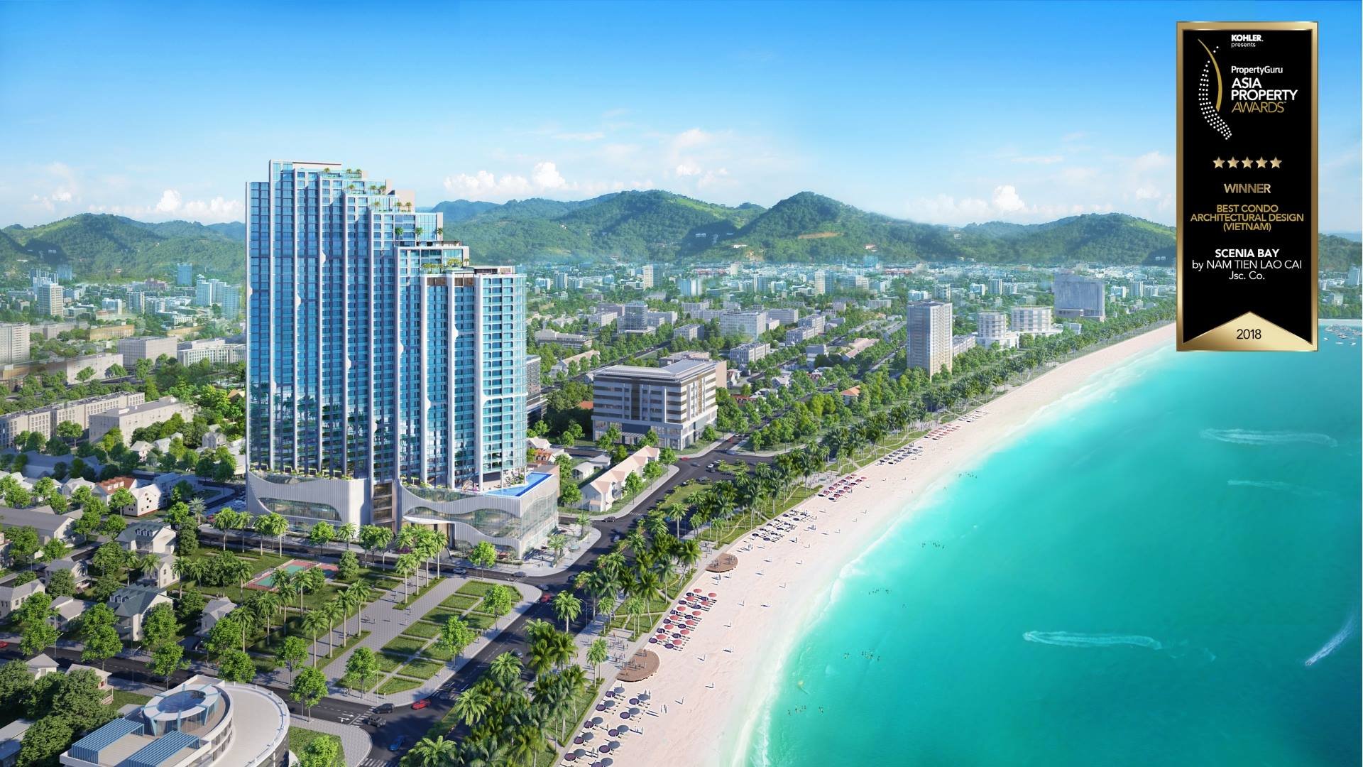 Scenia Bay là tổ hợp căn hộ nghỉ dưỡng cao cấp với thiết kế 4 mặt tiền độc đáo, nổi bật với kiến trúc hình khối Domino chồng xếp và layout hình xương cá độc đáo, đảm bảo 100% căn hộ đều có tầm nhìn trực diện ra Vịnh Nha Trang tuyệt đẹp.