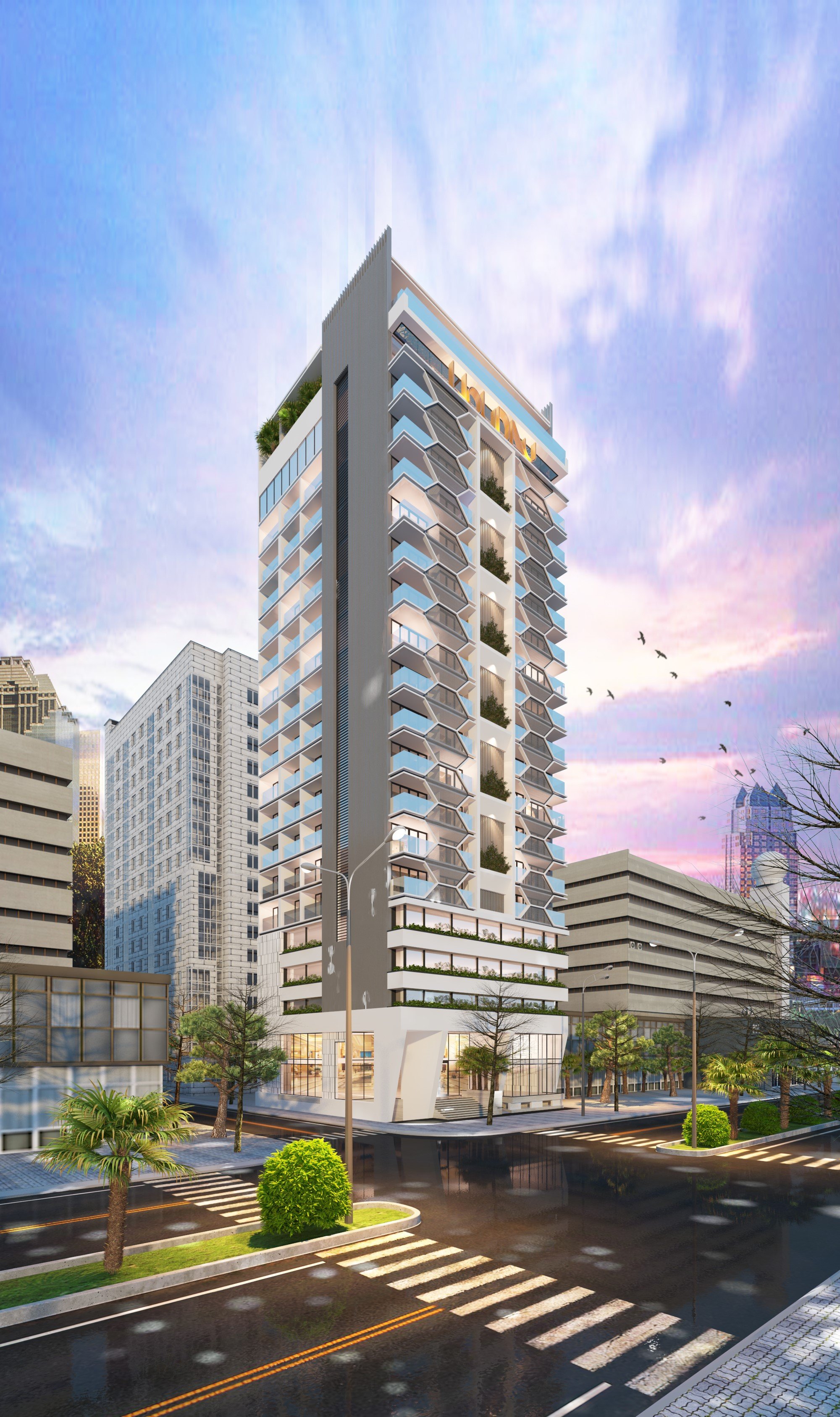Phá vỡ sự đơn điệu của những khối bê tông đô thị, M Garden City hiện diện như một "khu rừng thẳng đứng" đầy ngoạn mục giữa lòng phố biển Đà Nẵng. Ngôn ngữ kiến trúc xanh độc đáo với thảm thực vật phủ kín các tầng, đan xen hài hòa cùng vẻ đẹp mộc mạc của bê tông trần, tạo nên một hệ sinh thái nghỉ dưỡng tươi mát và khác biệt. Không gian nơi đây là cuộc đối thoại đầy cảm xúc giữa con người và thiên nhiên, mang lại trải nghiệm thư thái và an nhiên tuyệt đối.