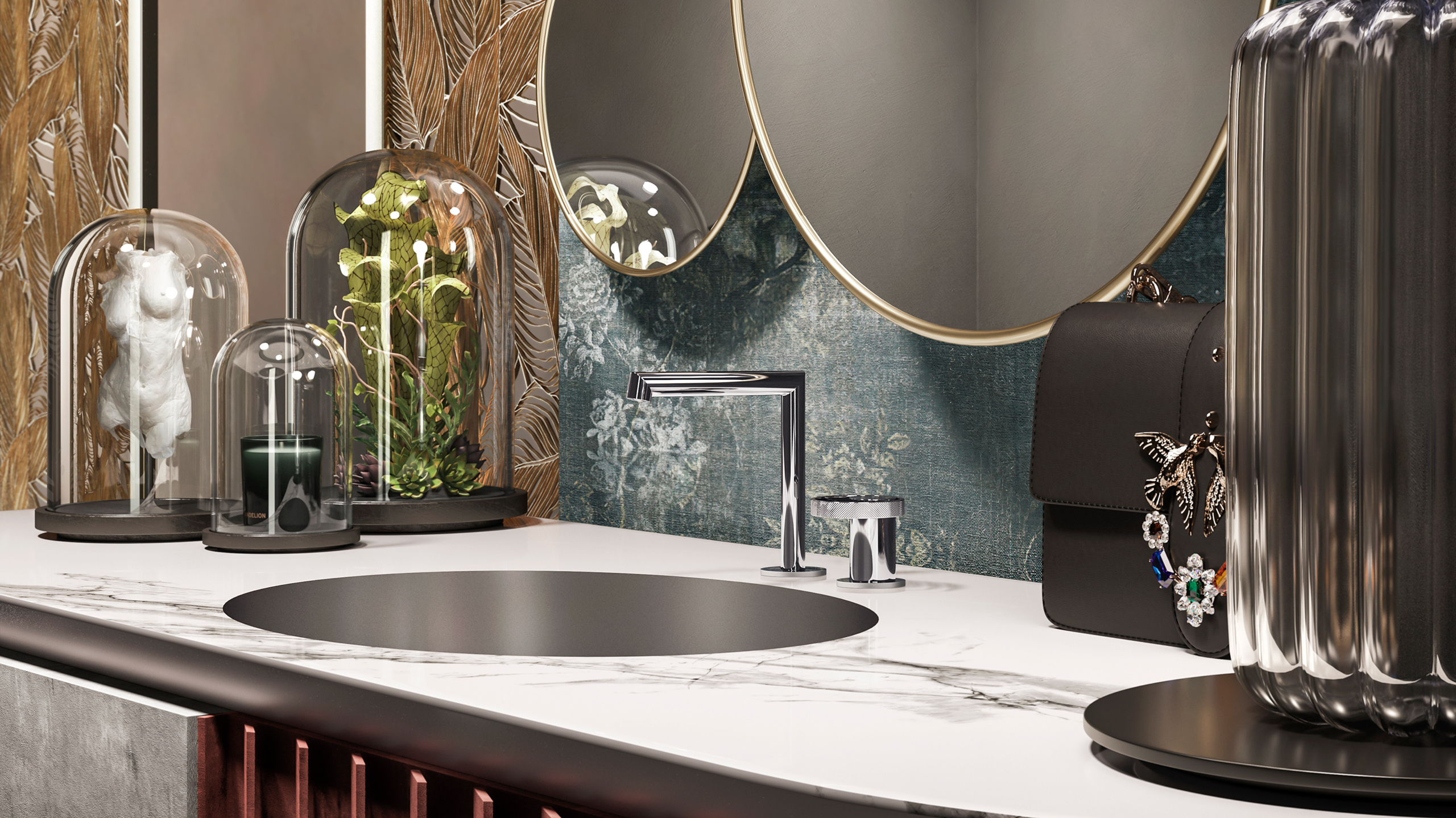Anello Copper với sắc vàng hồng đầy phong cách sở hữu những đường cong uốn lượn và vẻ đẹp mềm mại nữ tính, kết hợp hài hòa với nội thất calacatta và mang tới sự ấm cúng cho phòng tắm.