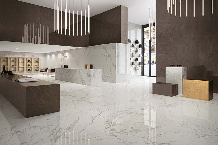 Kể từ khi lên thiết kế phác thảo đến công đoạn sản xuất, gạch ốp lát khổ lớn mô phỏng hoàn hảo những đường vân đá cẩm thạch tuyệt đẹp … đáp ứng với nhiều nhu cầu thị hiếu khác nhau.