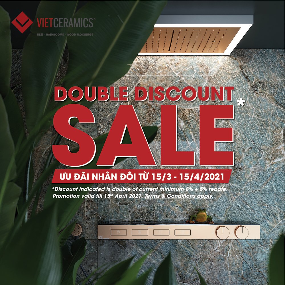 Từ 15/03/2021 đến 15/04/2021, Vietceramics giới thiệu chương trình khuyến mãi Ưu Đãi Nhân Đôi, ưu đãi thêm 5% trên tổng giá trị đơn hàng ngay tại thời điểm thanh toán. Đây là " cơ hội vàng" để các khách hàng tân trang hay sửa chữa nhà cửa sử dụng các sản phẩm gạch ốp lát, sàn gỗ và thiết bị vệ sinh chất lượng từ các thương hiệu hàng đầu thế giới như Gessi, Villeroy & Boch, Cielo, Vitra tới Emil Ceramica, Ariostea, Atlas Concorde cho gia đình thân yêu của mình.