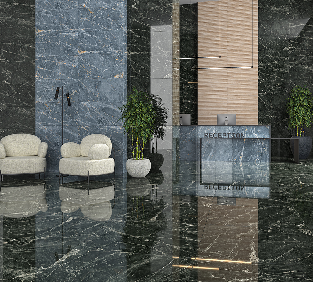Bộ sưu tập Brasilia có ba màu sắc: trắng, kem và xanh đen, với hai kích thước 60x120 và 120x120, giúp gia chủ có nhiều lựa chọn để thiết kế không gian sống.