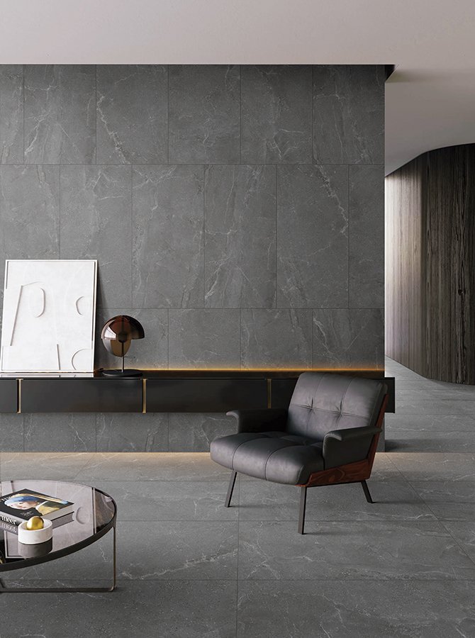 MONZA 2 kết hợp đá cẩm thạch Ý Grigo Soveraia thô mộc cùng đá cuội Andalusia ấm áp. Sự hòa quyện độc đáo này mang đến không gian sống vẻ đẹp hiện đại, quý giá, thể hiện sức mạnh, sự tĩnh lặng và cá tính riêng biệt.