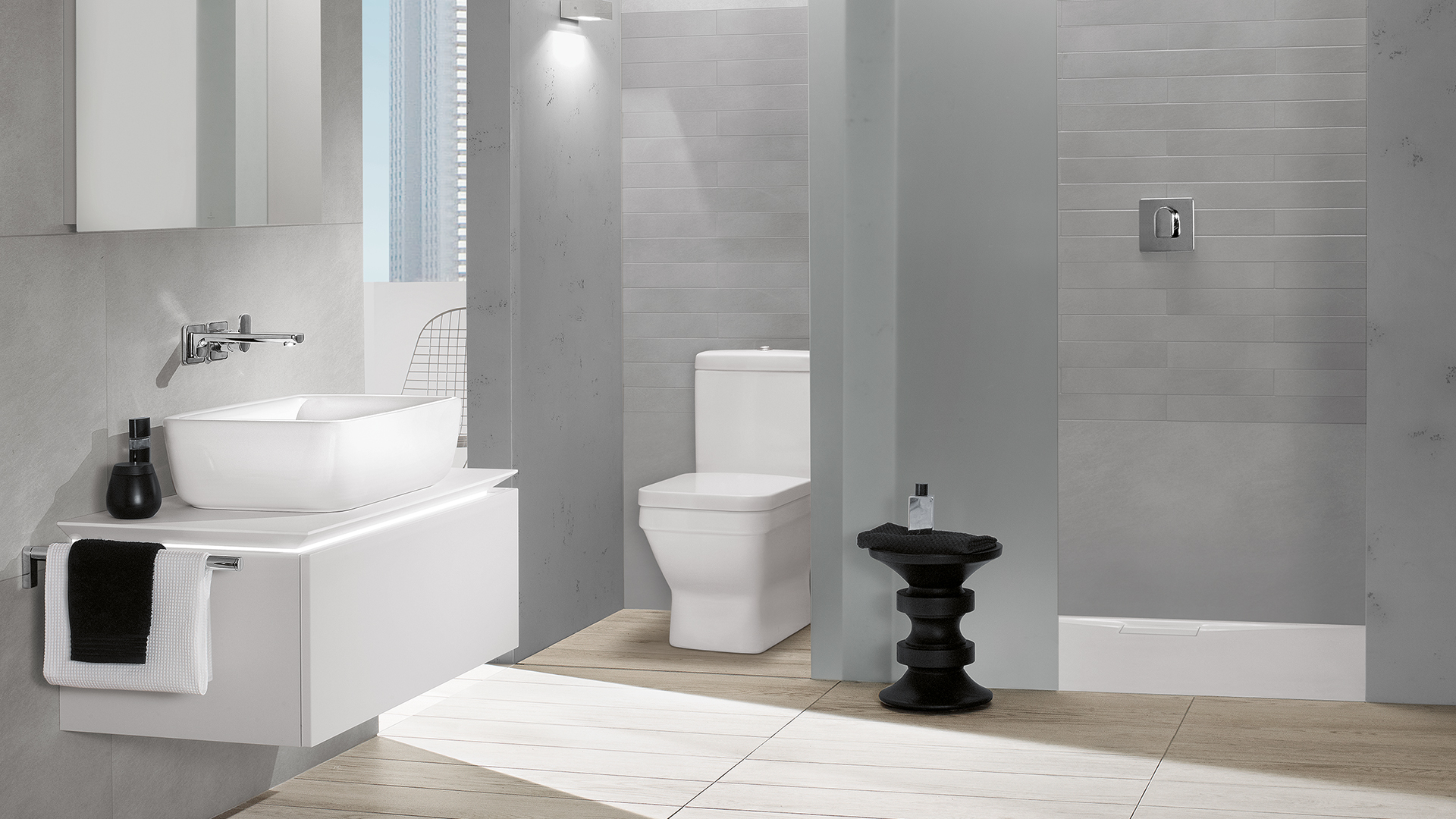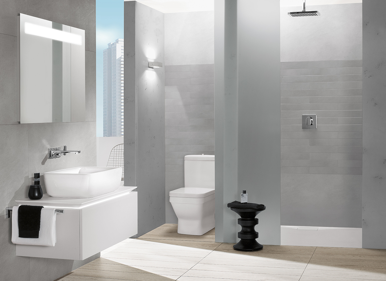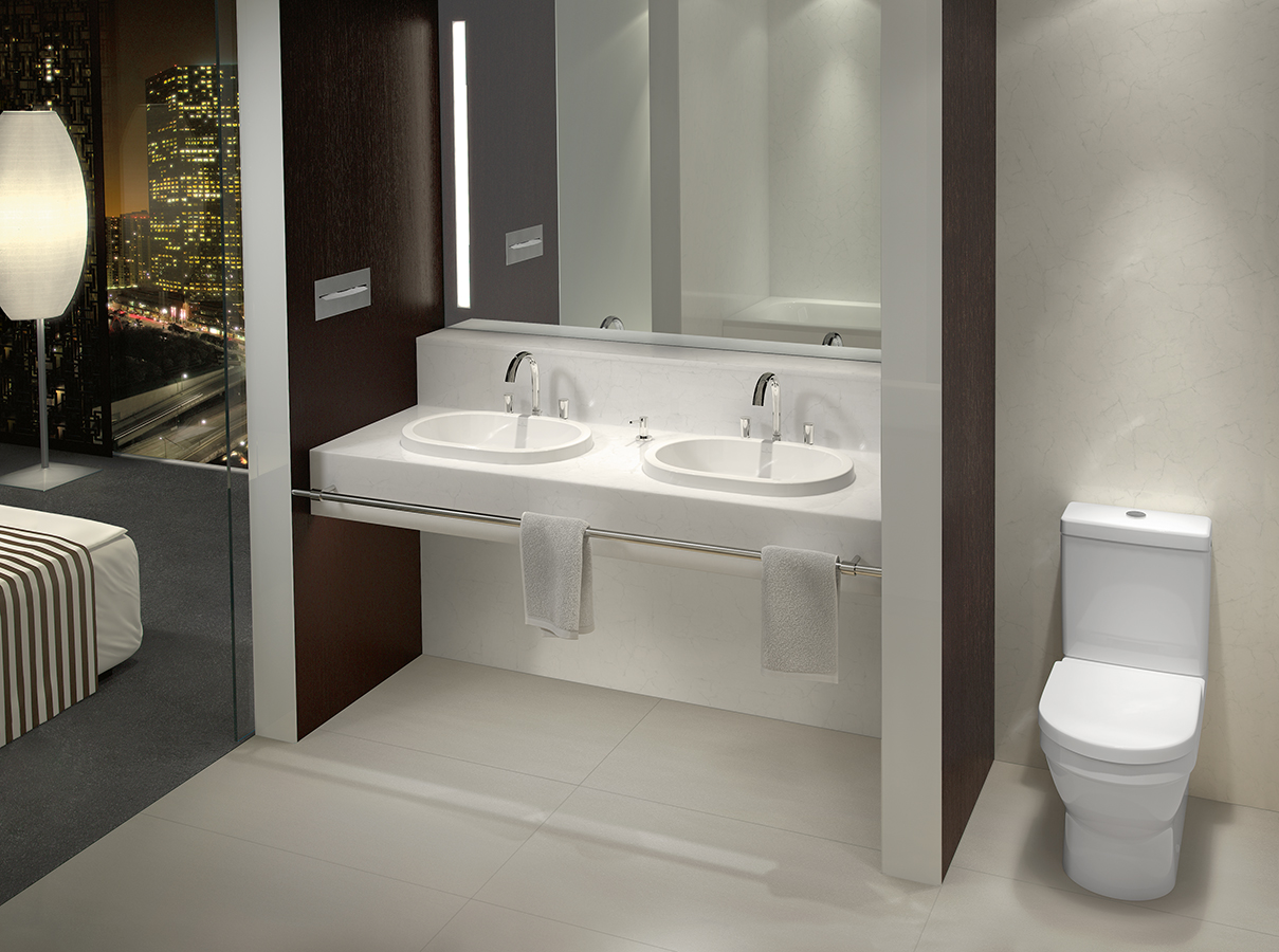 Architectura trở thành tuyên ngôn thiết kế của thời đại nhờ kiểu dáng giản lược kết hợp với các chi tiết tinh tế. Thiết kế bo góc ấn tượng, đồng bộ từ lavabo, bồn cầu và bồn tắm, giúp không gian có thêm điểm nhấn.