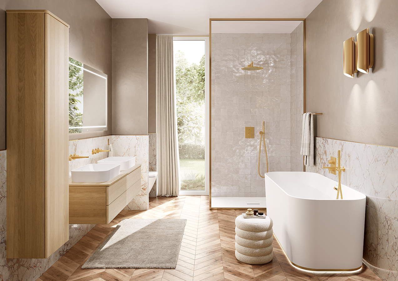 Bộ sen tay Embrace Plus từ Villeroy & Boch mang đến trải nghiệm tắm hoàn hảo với thiết kế trang nhã, điều chỉnh dễ dàng và công nghệ Easy Clean bền bỉ. Kết hợp cùng mặt nạ điều khiển Conum hình nón tinh tế, tạo dòng chảy LaminarJet êm ái, gần như không bắn tóe. Sự kết hợp này mang lại vẻ đẹp sang trọng và trải nghiệm thư giãn tuyệt đối cho phòng tắm của gia chủ.