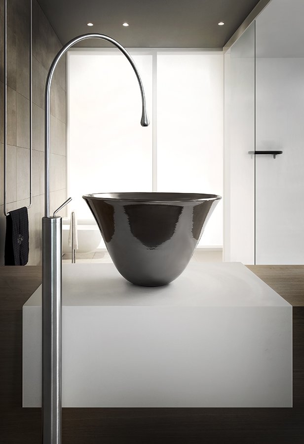 Lấy cảm hứng từ hình thái uyển chuyển của nước, Goccia là bộ sưu tập mang tính cách mạng với thiết kế đột phá. Vượt trên vai trò một phụ kiện nội thất phòng tắm, Goccia kiến tạo những cách tương tác mới, mang vẻ đẹp và công năng của nước đến mọi không gian một cách đầy thanh lịch và quyến rũ. Nhà thiết kế Prospero Rasulo là một nghệ sĩ tài hoa tốt nghiệp Học viện Mỹ thuật Brera (Milan) với kinh nghiệm sáng tác đa dạng. Triết lý của ông đến từ sự tự do sáng tạo, khám phá vẻ đẹp gợi mở từ những hình khối đơn giản. Qua đó, ông biến những không gian và hành động thường nhật trở nên duy mỹ và đặc biệt. Vòi chậu rửa phiên bản cổ cao, được thiết kế chuyên biệt cho các mẫu chậu rửa đặt bàn. Nổi bật với đầu vòi dài có thể xoay linh hoạt, sản phẩm mang lại sự thuận tiện tối đa khi sử dụng. Hoàn thiện với màu Đồng Xước GHRC (Copper Brushed GHRC) sang trọng và có độ bền cao.