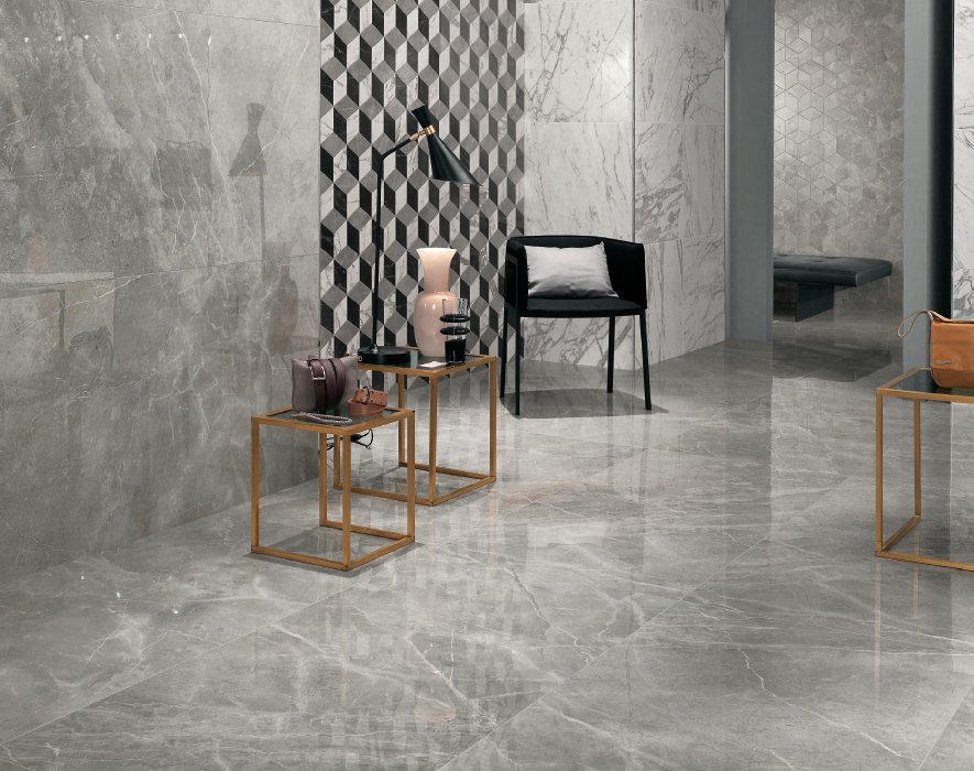 Gạch vân đá marble với các tông màu trung tính ốp lát trên các bức tường chính đem đến sự tương phản hoàn hảo khi được sử dụng cùng với gạch trang trí trên khu vực tường phụ. Với các gam màu trung tính của gạch được ứng dụng, gạch vân đá hoàn hảo đem đến các thiết kế nội thất phòng tắm khác biệt và ấn tượng.