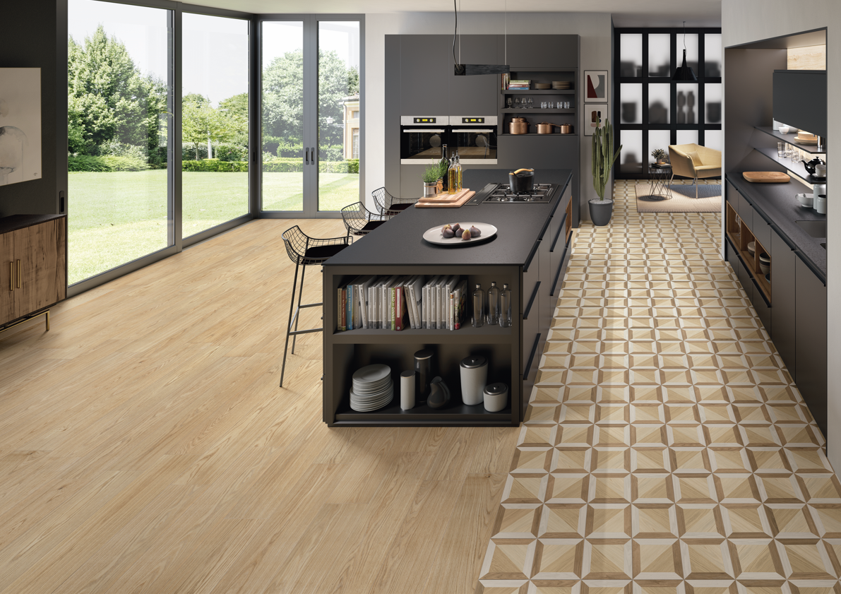 Nhằm tăng sự tiện lợi và đáp ứng nhu cầu kiến tạo bề mặt ấn tượng, tại Vietceramics có nhiều bộ sưu tập gạch vân gỗ và ván sàn được thiết kế sẵn họa tiết đa giác, giúp giảm bớt quy trình cắt ghép thủ công thường gặp ở sàn gỗ thông thường, khiến việc ốp lát dễ dàng hơn bao giờ hết.