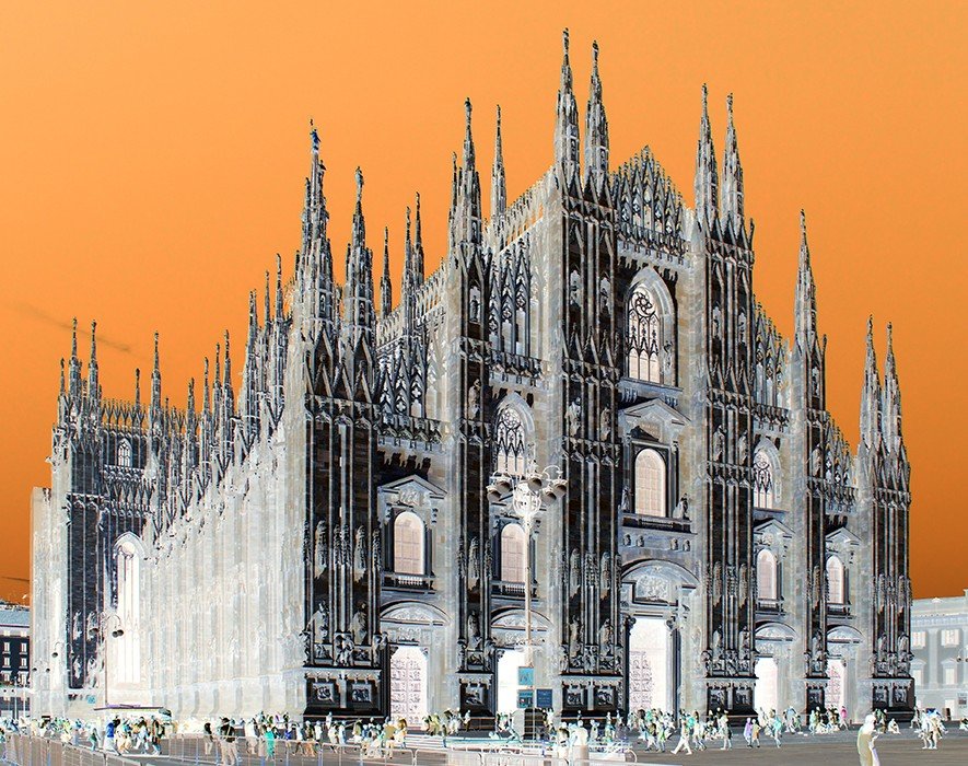 Duomo di Milano là nhà thờ lớn nhất ở Ý. Nhà thờ, được nhắc đến trong tiểu thuyết Innocents Markland của nhà văn Mark Twain. Công trình mất gần 600 năm để hoàn thành và việc xây dựng và trang trí kéo dài hàng thế kỷ như truyền thống kiến trúc xây dựng của một công trình lớn vào thời đó. Du khách chắc chắn khám phá ba ban thờ của Pellegrino Pellegrini, cũng như mạng lưới các tác phẩm điêu khắc trên chop mái nhà thờ.