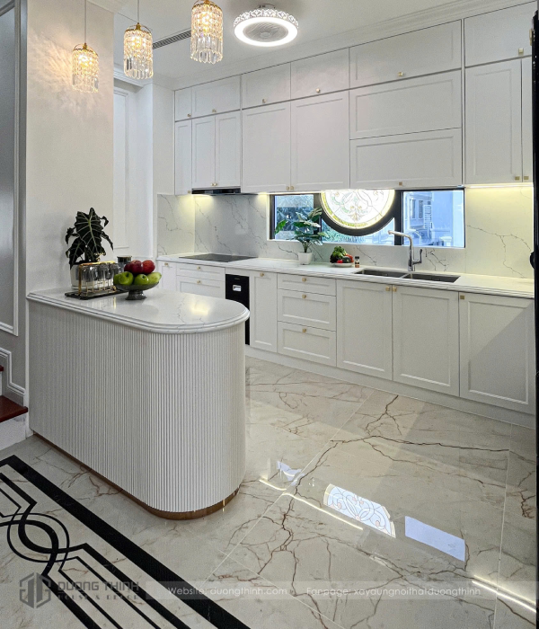 Nhiều sản phẩm của Vietceramics đã góp mặt trong công trình này. Sàn chính sử dụng bộ sưu tập gạch marble Ý Oro xuyên suốt, tạo nên vẻ cổ điển thu hút.