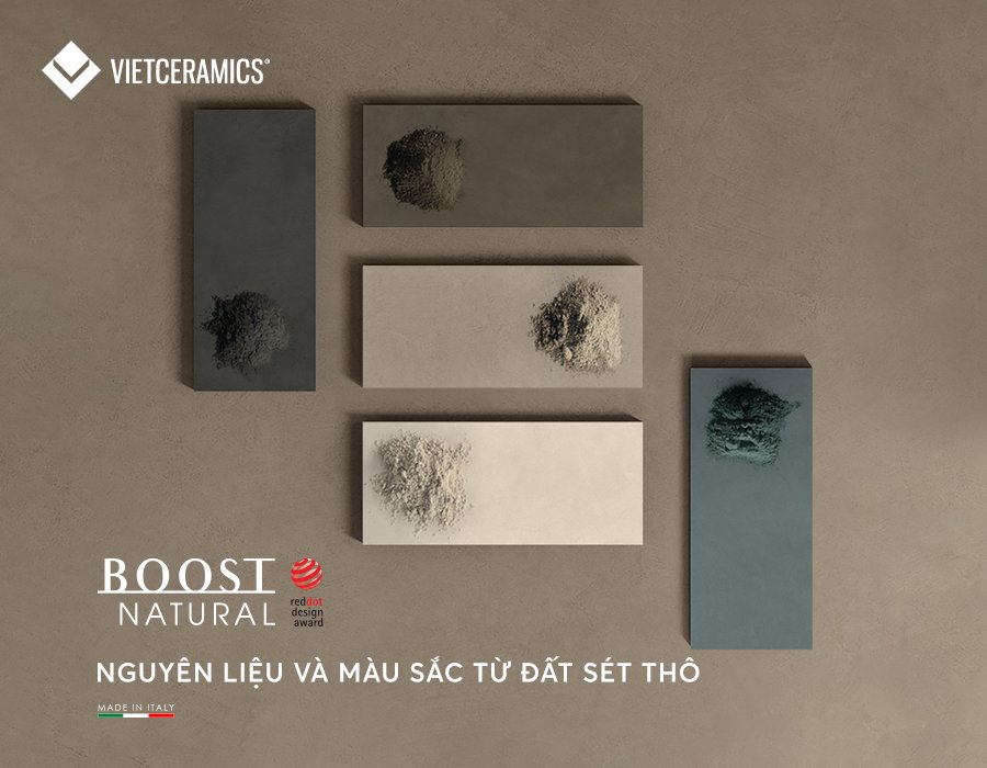 Boost Natural lấy cảm hứng từ vẻ đẹp thô sơ của nhiều loại đất sét, thể hiện bề mặt đặc sắc qua tay nghề thủ công của các nghệ nhân, ứng dụng cùng với công nghệ sản xuất gạch theo tiêu chuẩn chất lượng cao nhất tại Ý.