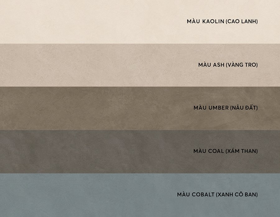 Boost Natural mang đến 5 lựa chọn mang màu lặng tự nhiên của đất sét thô: vàng tro, xám than, cao lanh, nâu đất, xanh cô ban; cùng 5 kích thước từ nhỏ đến siêu lớn: 30x60, 60x60, 60x120, 120x120, 120x278 cm.