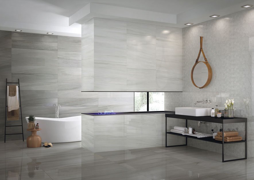 Hiệu ứng hình học 3D được mô phỏng hoàn hảo trên các bề mặt đem đến cho không gian phòng tắm những điểm nhấn hiện đại và đầy thư giãn.