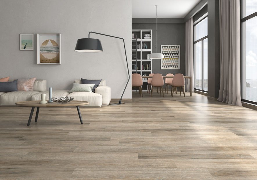 Gạch vân gỗ đem đến hơi thở tự nhiên, tươi mới và ấm áp cho không gian phòng khách.