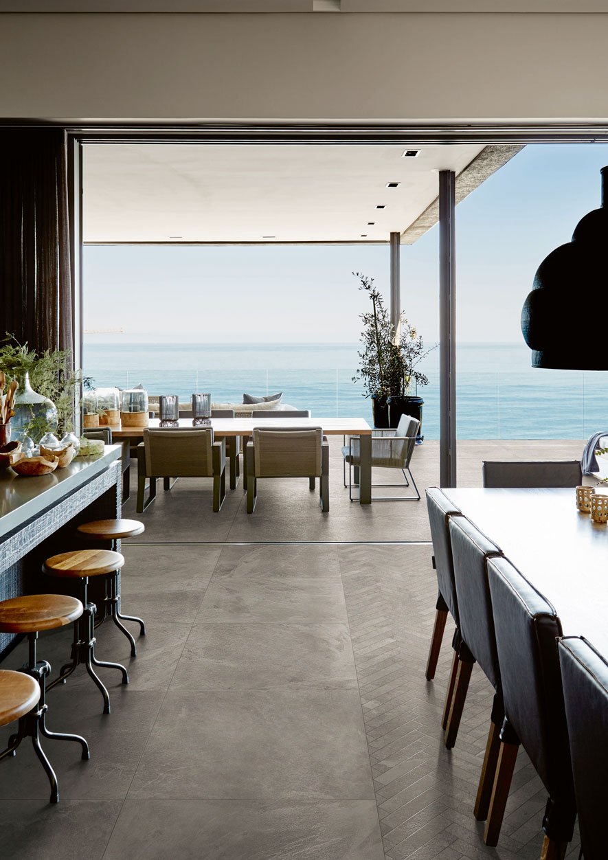 Gạch lát nền vân đá tự nhiên này làm tôn nên các màu sắc nội thất cho không gian phòng khách hiện đại này.