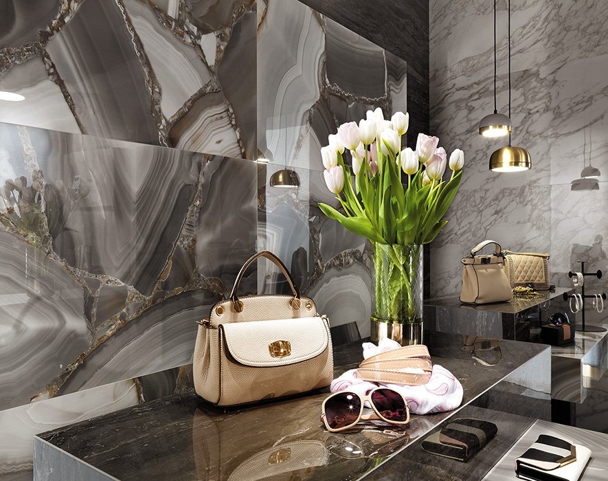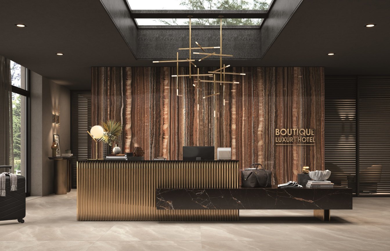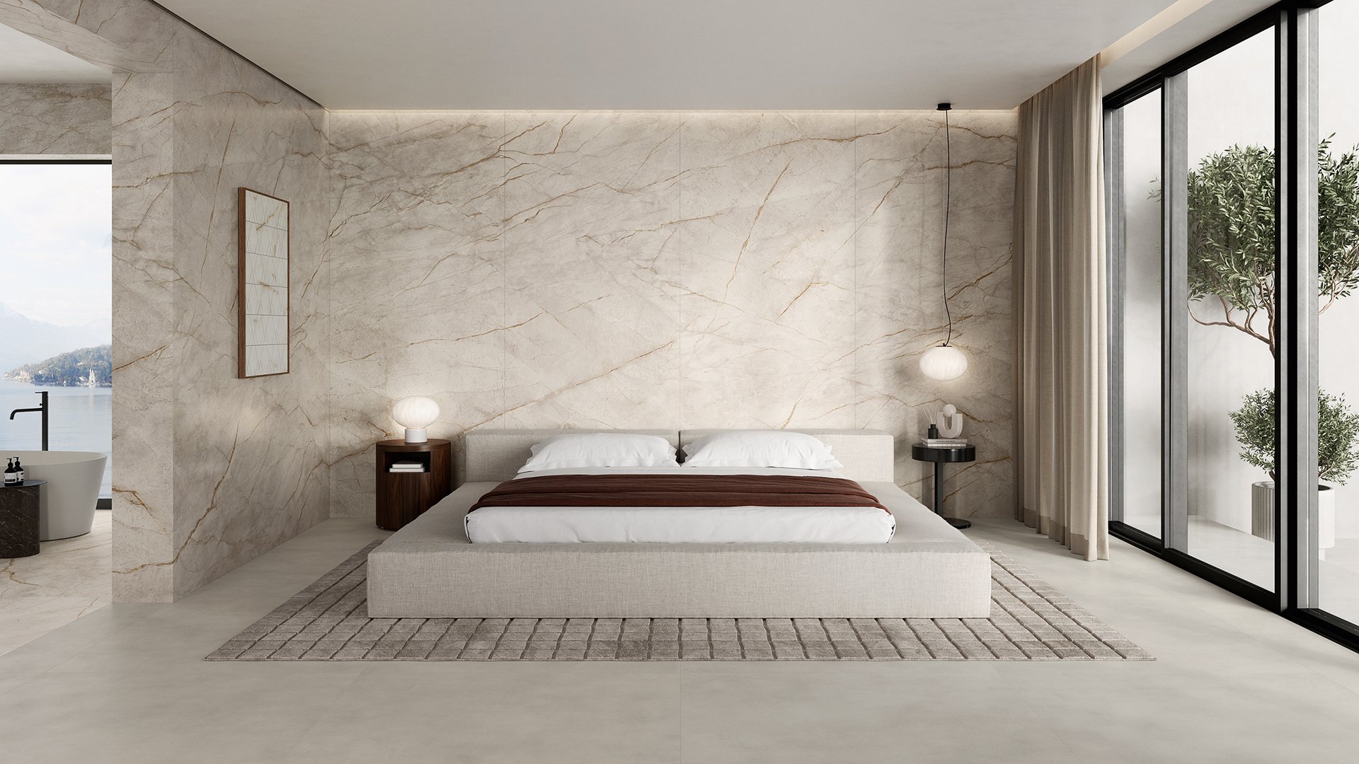 Vì kích thước lớn và không cần nhiều đường ron, không gian ốp gạch khổ lớn có tính liền mạch, thẩm mỹ, lý tưởng cho các dự án hạng sang. Vietceramics cho biết các mẫu gạch này được ứng dụng nhiều công nghệ hiện đại để tăng độ cứng và độ bền, giúp quá trình thi công xử lý gạch hiệu quả hơn và đảm bảo an toàn khi sử dụng lâu dài.