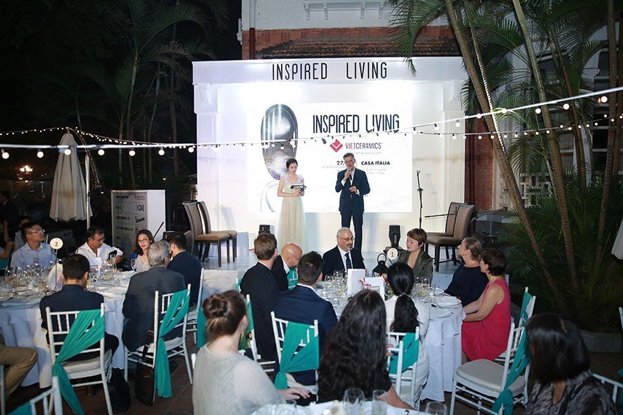 Trong tiết trời dịu mát của mùa Thu Hà Nội, ngày 27/10/2017 vừa qua tại Casa Italia diễn ra buổi gặp gỡ ấm cúng và thân mật. Với ý tưởng tôn vinh vẻ đẹp của phong cách Ý thông qua những thiết kế đẳng cấp, những câu chuyện văn hóa tràn đầy cảm hứng, ẩm thực hàng đầu, buổi tiệc tối đã diễn ra với sự có mặt của gần 100 khách mời là các KTS, NTK, giới truyền thông tại Hà Nội và hai vị khách mời Luigi từ Atlas Concorde và Fabio Minicozzi từ Gessi Singapore. Bà Cecillia Piccioni - đại sứ Ý tại Việt Nam thể hiện sự hào hứng và trân trọng của mình với các doanh nghiệp đang đem những thương hiệu Ý đẳng cấp đến với Việt Nam như Vietceramics.