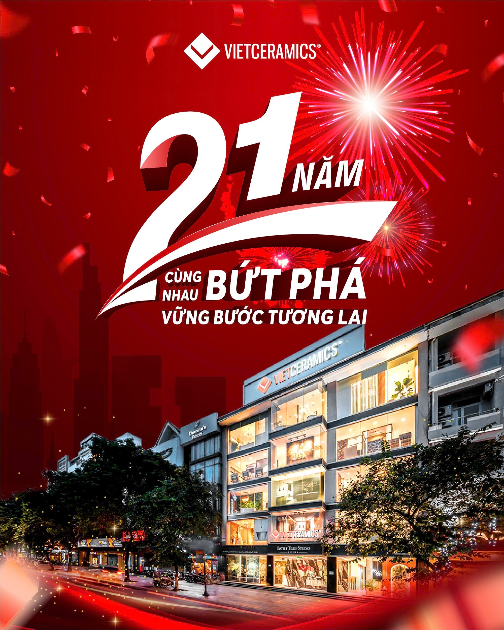 Tiệc mừng sinh nhật Vietceramics 21 tuổi đã được tổ chức trong không khí nồng nhiệt và thân tình tại chi nhánh Vietceramics ở Thành phố Hồ Chí Minh, Hà Nội và Đà Nẵng.