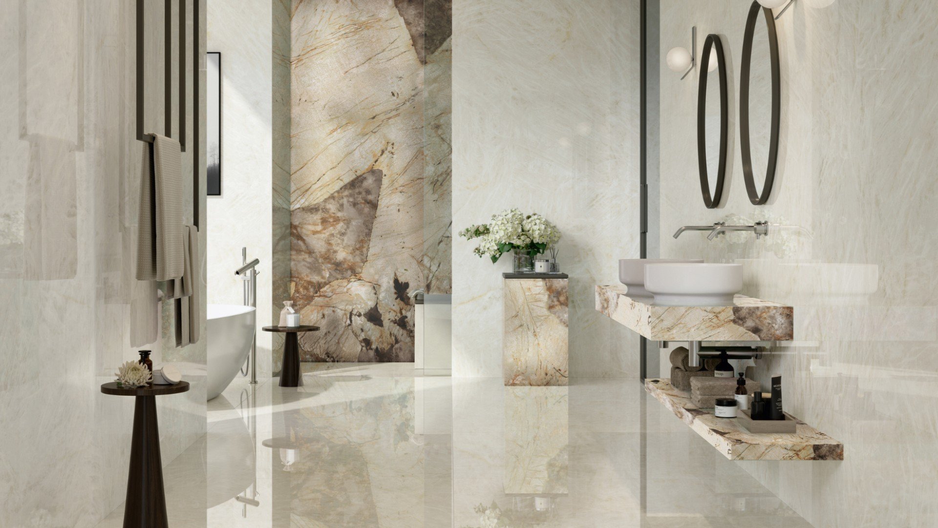 Đá marble Ý là di sản trường tồn trong thế giới kiến trúc nội thất và vẫn tiếp tục là một hệ tư tưởng mới cho thiết kế đương đại khi kết hợp cùng chất liệu porcelain, bứt phá nhiều giới hạn để trở thành một vật liệu thiết kế bền vững và sáng tạo.