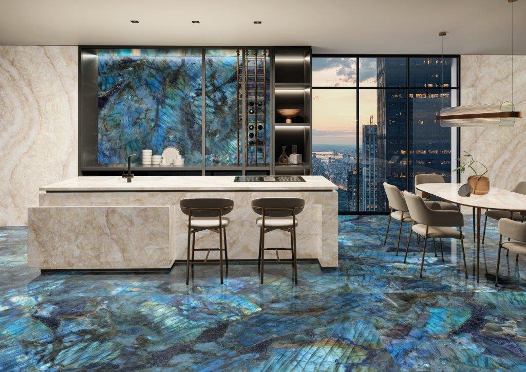 Tele di Marmo Lumia Labradorite có thể được phối cùng các mẫu gạch vân gỗ và sàn gỗ để tạo cảm giác ấm cúng và dễ chịu cho không gian.