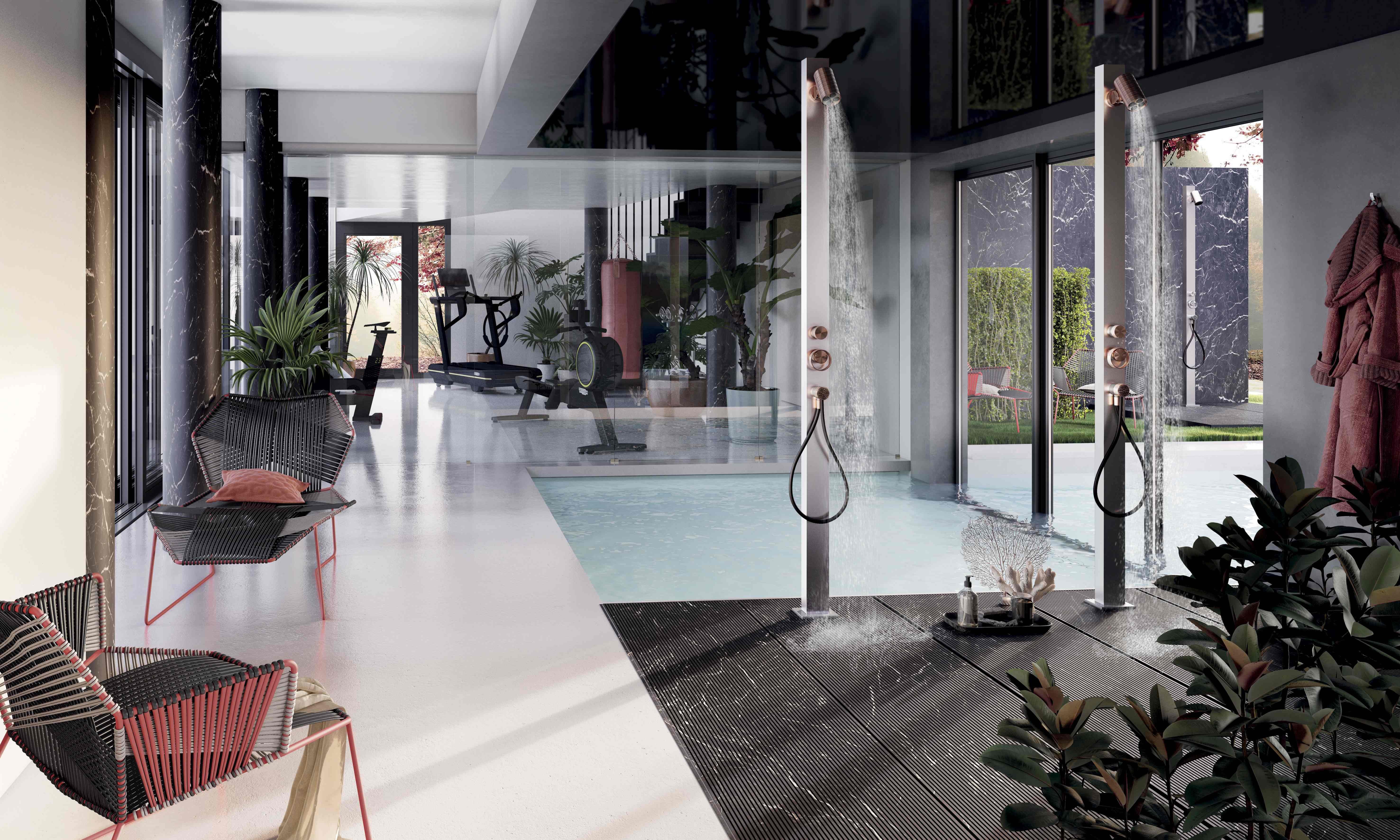 Từ những khách sạn 5 sao đến các dinh thự cao cấp, không gian phòng tắm Gessi nổi bật với các kiểu dáng thiết kế, màu sắc sang trọng, đáp ứng nhu cầu trải nghiệm thư giãn, chăm sóc sức khỏe cá nhân. Những thiết kế này cũng tuân theo các yêu cầu khắt khe về sự nhất quán và tinh tế trong thẩm mỹ, cũng như định hướng phong cách nghỉ dưỡng được cá nhân hóa.