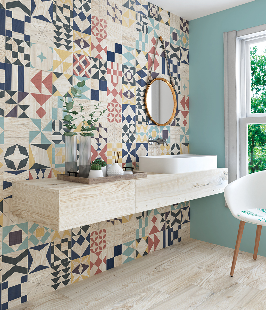 Gạch vân gỗ có màu sắc tự nhiên với những đường nét vân gỗ tinh tế, hoản hảo cho phòng tắm đương đại.