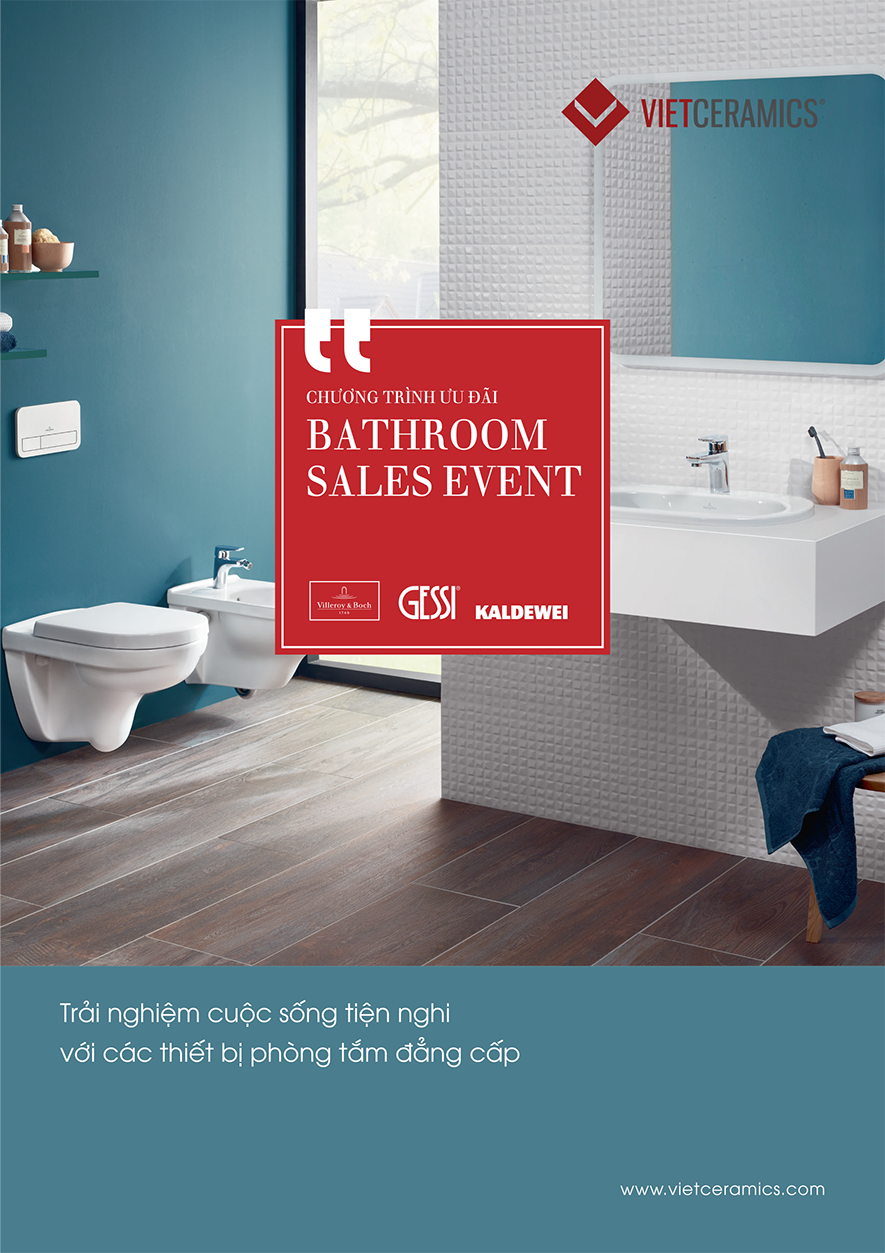 Vietceramics mang đến chương trình khuyến mãi ưu đãi đặc biệt 30% dành cho các thiết bị vệ sinh và phòng tắm cao cấp thương hiệu Châu Âu. Nếu như bạn đang có kế hoạch làm mới không gian phòng tắm, đừng bỏ lỡ cơ hội mua sắm tuyệt vời này, khách hàng sẽ có cơ hội mua bộ sản phẩm thiết bị vệ sinh bao gồm sen tắm, chậu rửa mặt, vòi chậu rửa, bồn cầu... từ ba thương hiệu nổi tiếng Gessi, Villeroy & Boch và Kaldewei với mức ưu đãi 30%.
