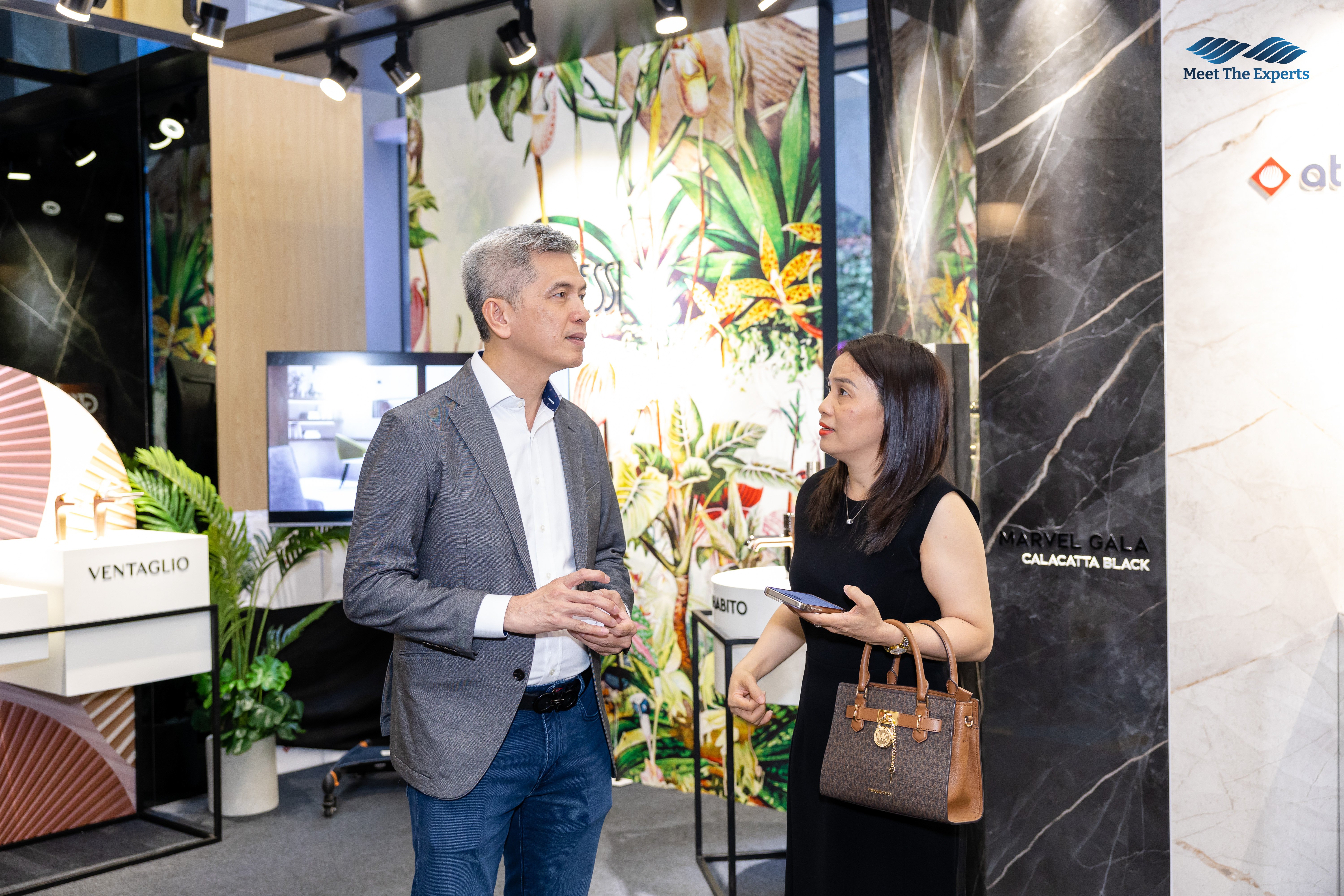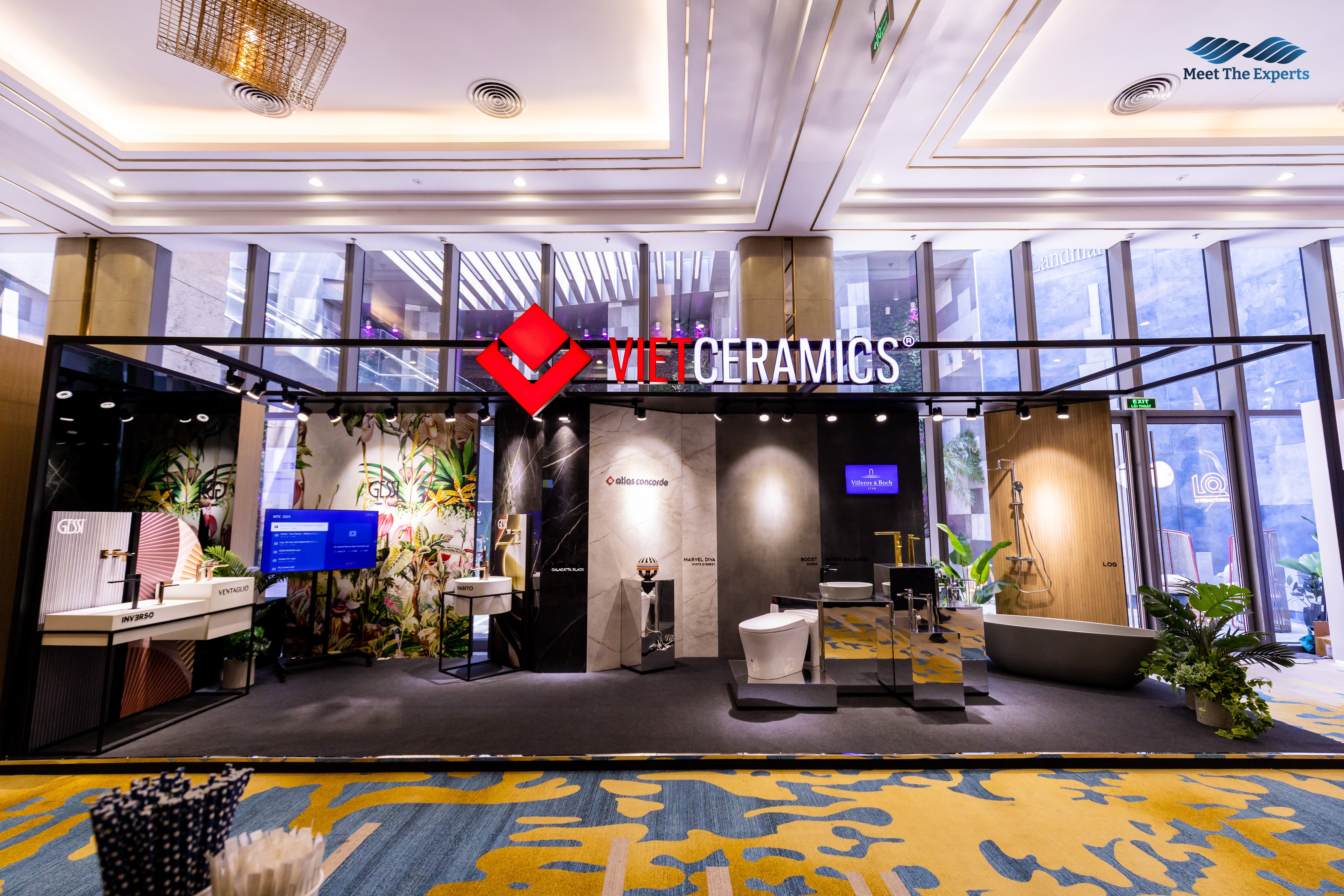 Là đơn vị đồng tổ chức Meet The Experts 2025, không gian trưng bày của Vietceramics tại sự kiện có diện tích 27m2. Tại đây phô bày trọn vẹn vẻ đẹp độc đáo của các bộ sưu tập gạch ốp lát và nội thất phòng tắm. Mỗi bộ sưu tập đều được tuyển chọn kỹ lưỡng từ ba đối tác của Vietceramics gồm Atlas Concorde, Villeroy & Boch và Gessi, tiêu biểu cho những xu hướng kiến trúc mới nhất hiện nay.