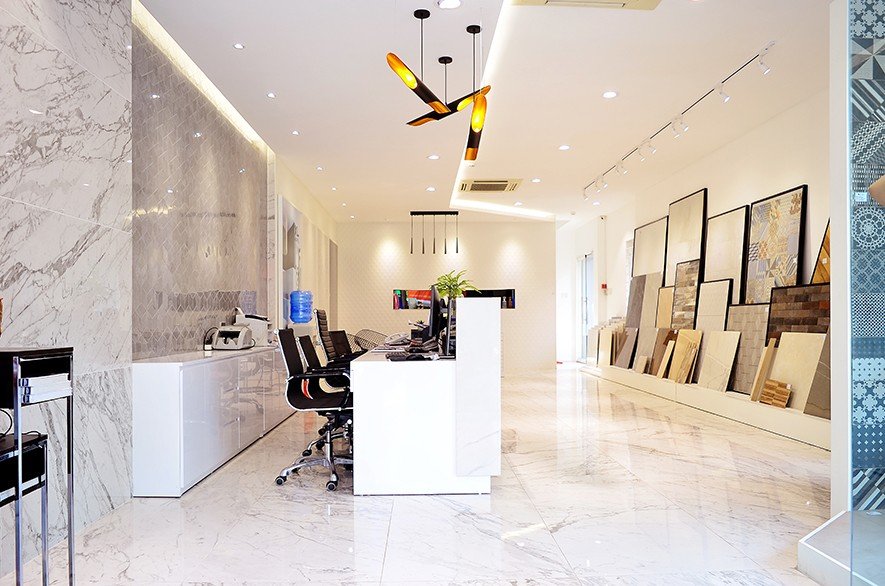 Showroom trưng bày bao gồm khu vực thư viên trưng bày các bộ sưu tập gạch ốp lát với các bề mặt và kích thước đa dạng từ gạch vân đá marble, gạch vân đá tự nhiên, gạch vân gỗ hay gạch trang trí, phù hợp với nhiều không gian thiết kế. Không gian hoàn hảo này sẽ là địa điểm lý tưởng cho các kiến trúc sư và nhà thiết kế nội thất làm việc với chủ nhà để lựa chọn các sản phẩm phù hợp nhất.