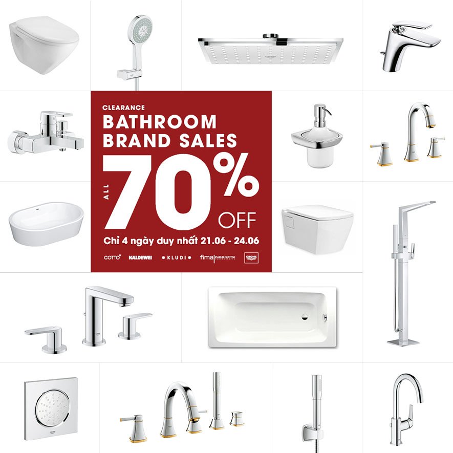 Các sản phẩm ưu đãi bao gồm lavabo, vòi lavabo, vòi bồn tắm, bộ sen tắm và các phụ kiện phòng tắm.