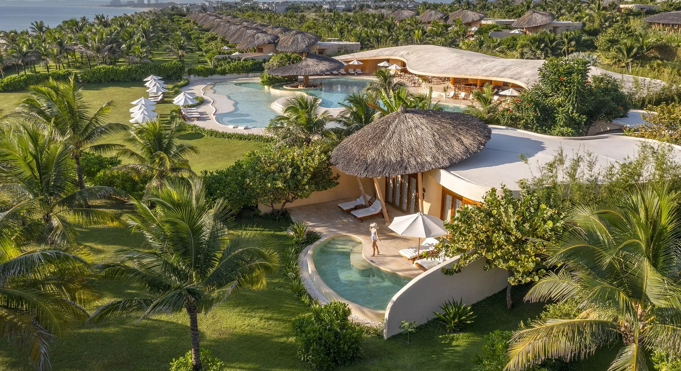 Lấy cảm hứng từ hình ảnh chiếc nón lá thân thương và vẻ đẹp mộc mạc của miền duyên hải, Ana Mandara Cam Ranh hiện lên như một tuyệt tác kiến trúc giao hòa giữa văn hóa bản địa và chuẩn mực nghỉ dưỡng xa xỉ. Những căn biệt thự với mái vòm uốn lượn mềm mại, ẩn mình giữa thảm thực vật xanh mát bên bờ biển Bãi Dài, kiến tạo nên một không gian riêng tư, tĩnh tại và thấm đẫm hơi thở tự nhiên thuần khiết.