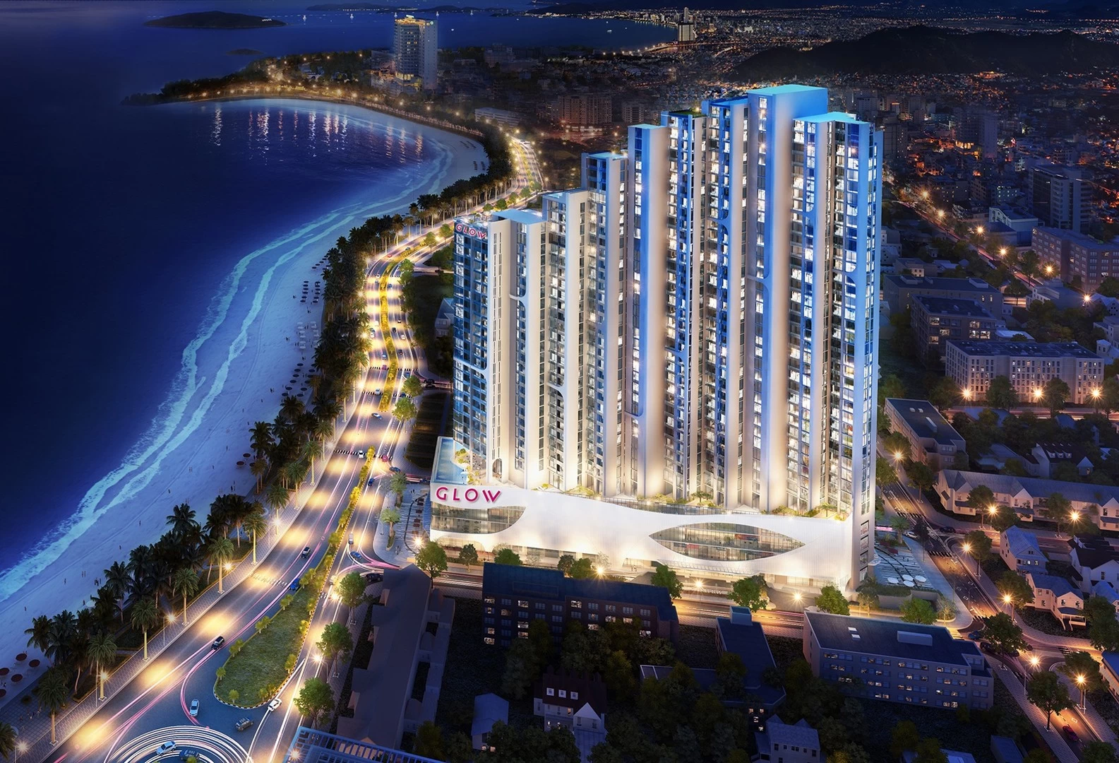 Tọa lạc trên cung đường biển phía Bắc Nha Trang, GLOW Scenia Bay gây ấn tượng mạnh với cấu trúc thiết kế "Domino chồng xếp" và layout hình xương cá độc đáo. Nhờ tư duy kiến trúc thông minh này, toàn bộ các căn hộ đều sở hữu tầm nhìn trực diện hướng ra vịnh biển xanh thẳm. Không gian nơi đây mang hơi thở hiện đại, trẻ trung, là điểm dừng chân lý tưởng để tận hưởng trọn vẹn nắng gió miền nhiệt đới.