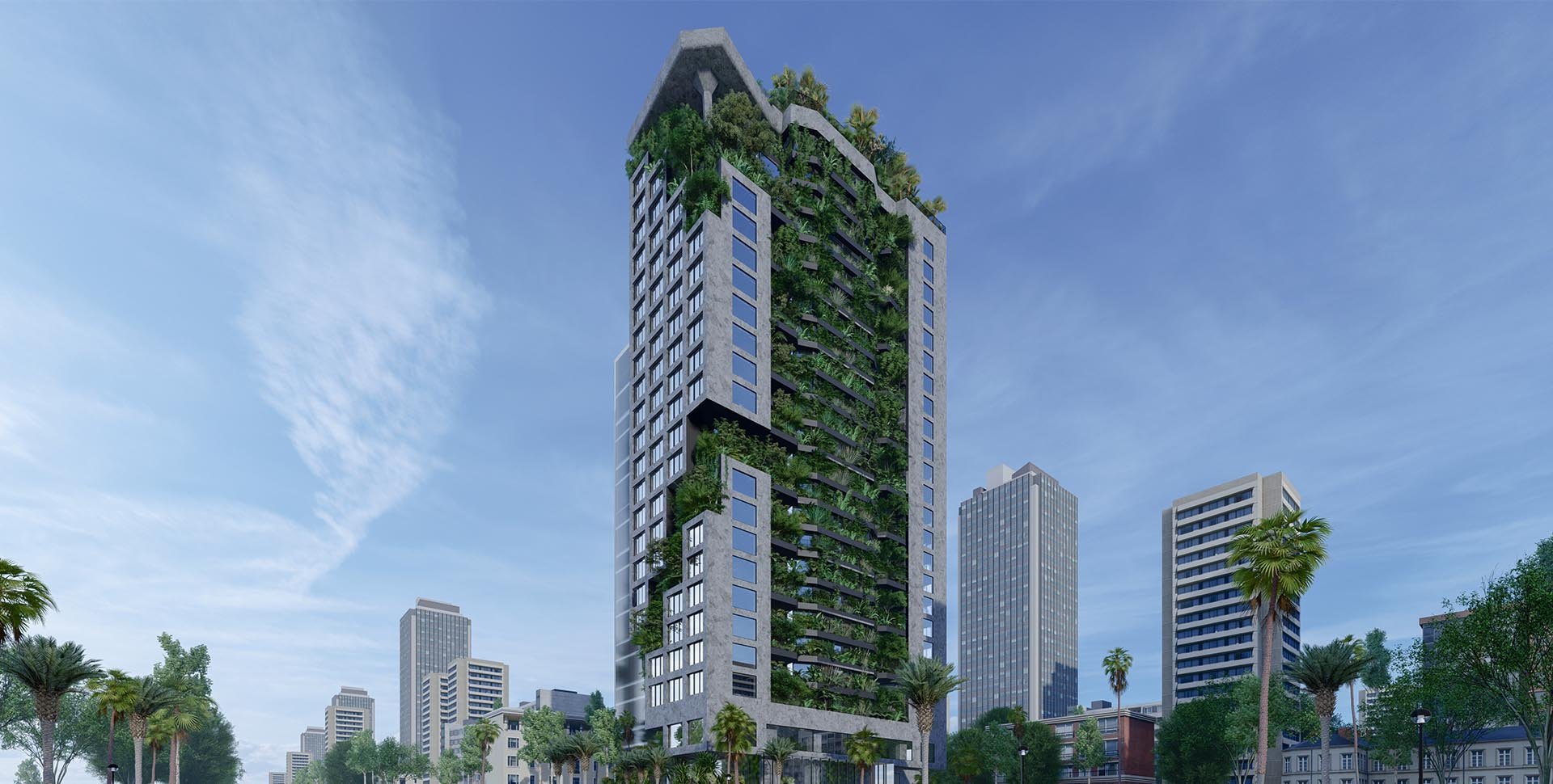 Phá vỡ sự đơn điệu của những khối bê tông đô thị, M Garden City hiện diện như một "khu rừng thẳng đứng" đầy ngoạn mục giữa lòng phố biển Đà Nẵng. Ngôn ngữ kiến trúc xanh độc đáo với thảm thực vật phủ kín các tầng, đan xen hài hòa cùng vẻ đẹp mộc mạc của bê tông trần, tạo nên một hệ sinh thái nghỉ dưỡng tươi mát và khác biệt. Không gian nơi đây là cuộc đối thoại đầy cảm xúc giữa con người và thiên nhiên, mang lại trải nghiệm thư thái và an nhiên tuyệt đối.