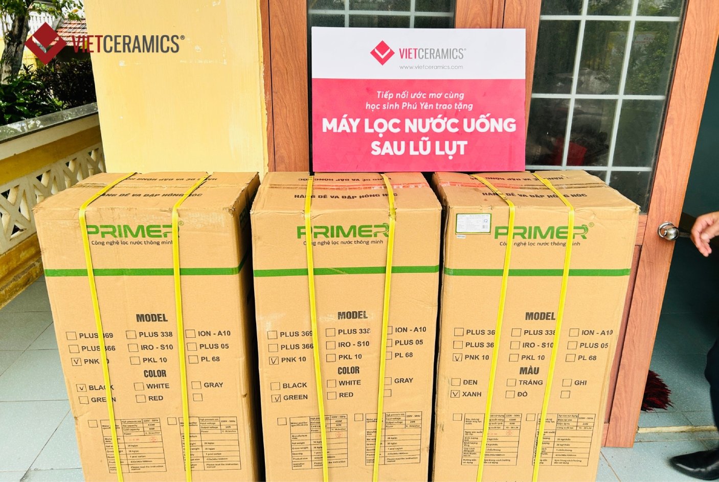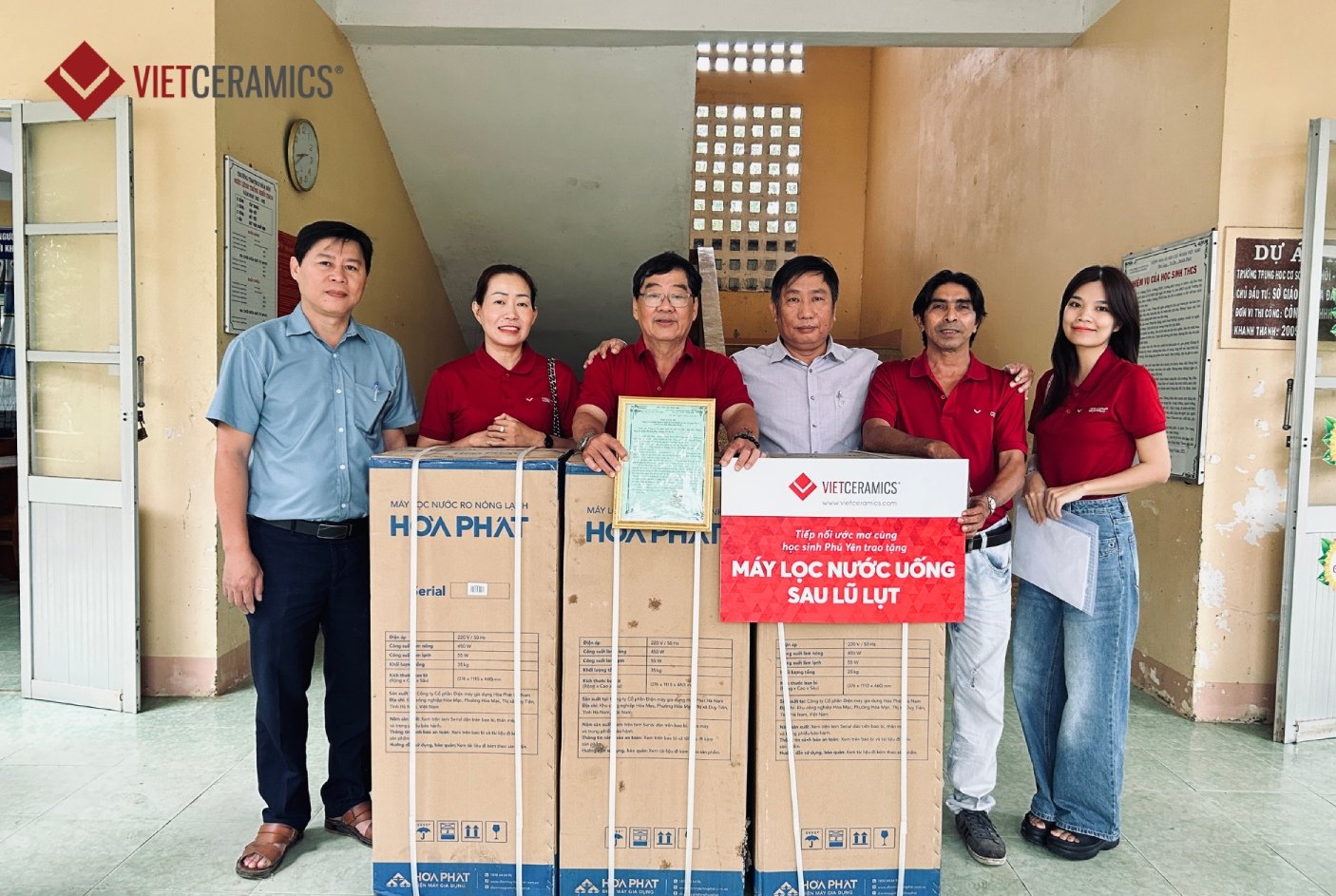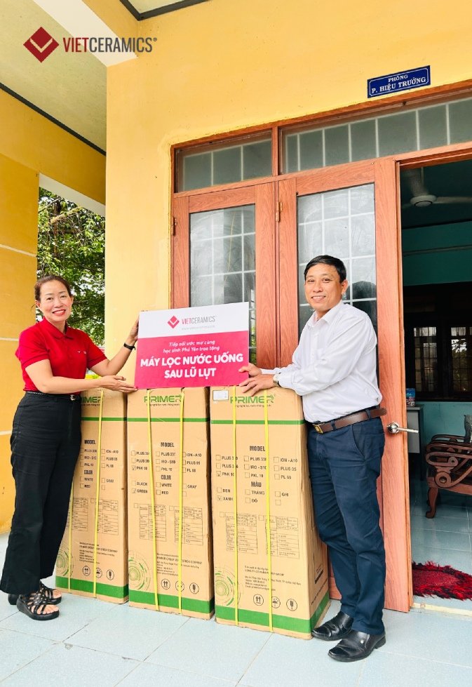 Hoa Hoi Primary & Secondary School (Hoa Hoi Commune, Phu Hoa District): Vietceramics donated three water filtration systems along with essential stationery sets for the students.
