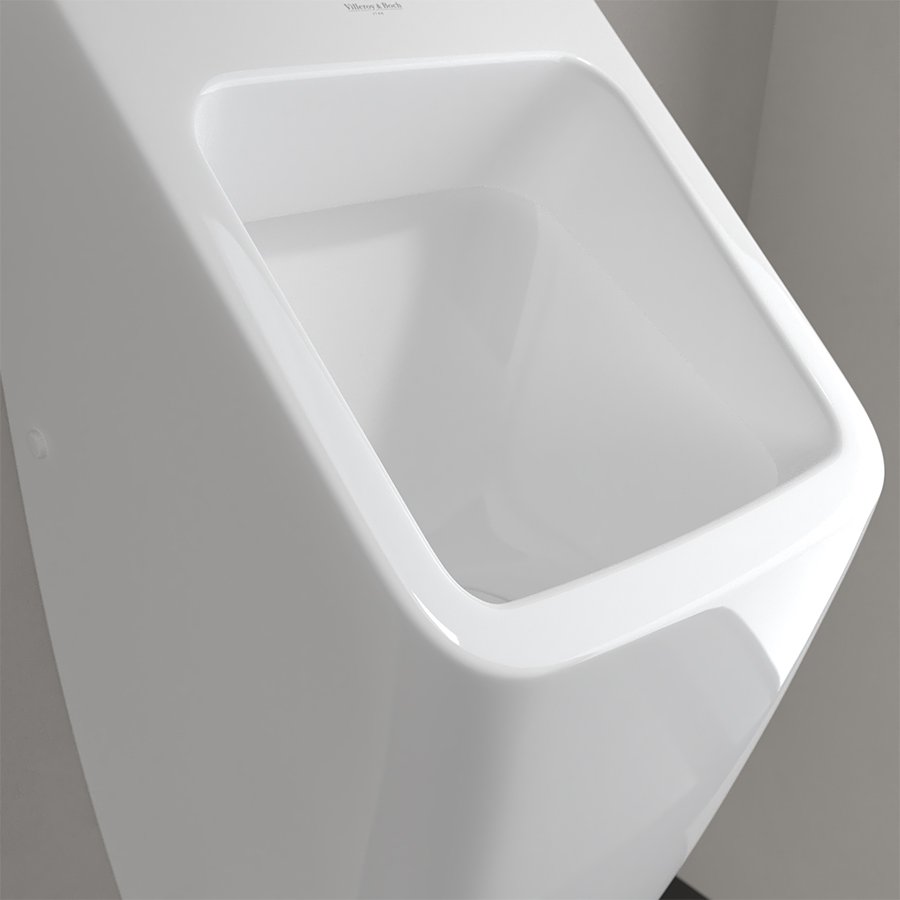 Bồn tiểu nam gắn tường Architectura Villeroy & Boch với bề mặt sứ tráng men bóng giúp vệ sinh nhanh chóng, kết hợp cùng hệ thống xả siphonic mạnh mẽ làm sạch hiệu quả và tiết kiệm nước, mang lại phòng tắm gọn gàng và thẩm mỹ.