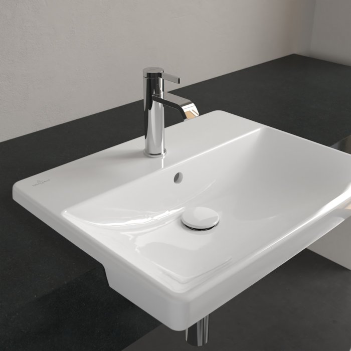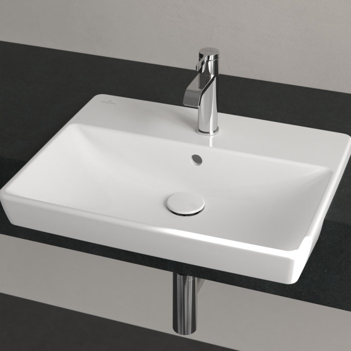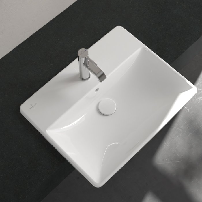 The Villeroy & Boch La Belle Countertop Washbasin in Ceramic features a soft Square/Rectangular design with a matching Ceramic valve cover. Its luxury, tap-hole-free style brings a classic feel to modern spaces.