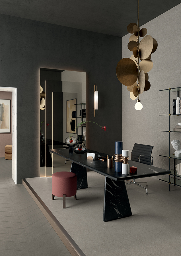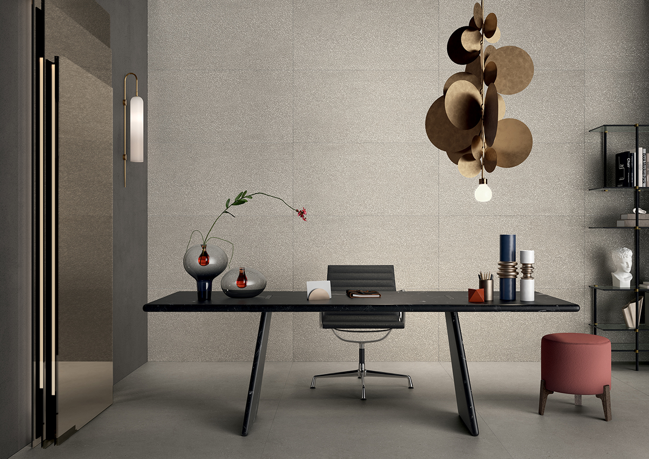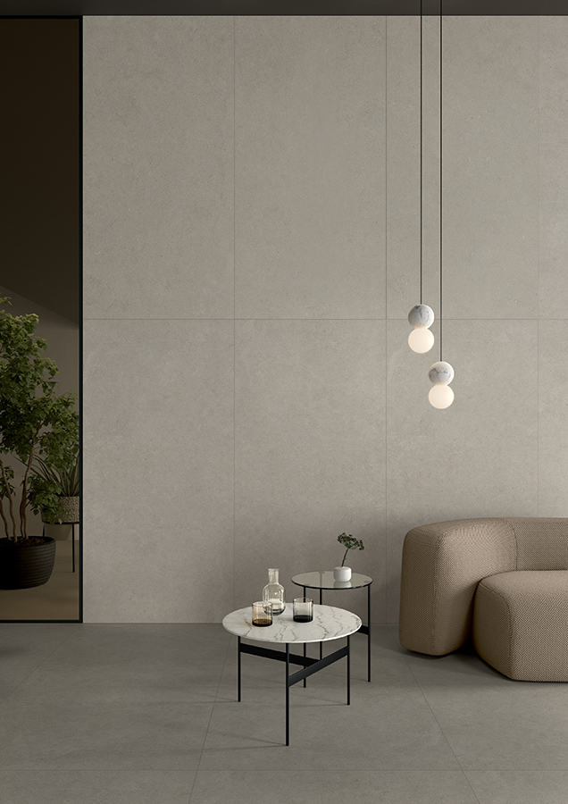 Intense honors classic limestone, with fossilized clastic granules, recreating its natural quality alongside Lea Ceramiche's distinctive touch. The collection is a fusion of craftsmanship and technology, bringing a unique identity to every space.