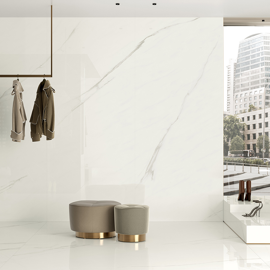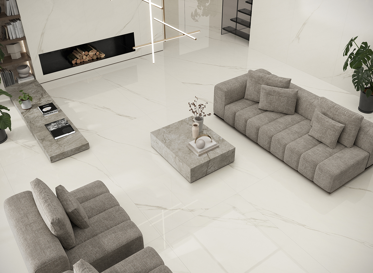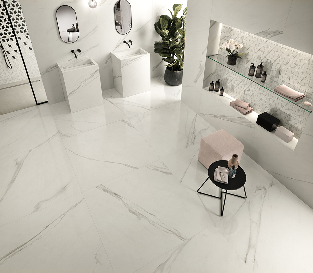 The Marvel Meraviglia collection features two color options: White Calacatta and Black Origin. Available in two finishes—Lappato (semi-polished) and Velvet—Marvel Meraviglia caters to a diverse range of tiling requirements.