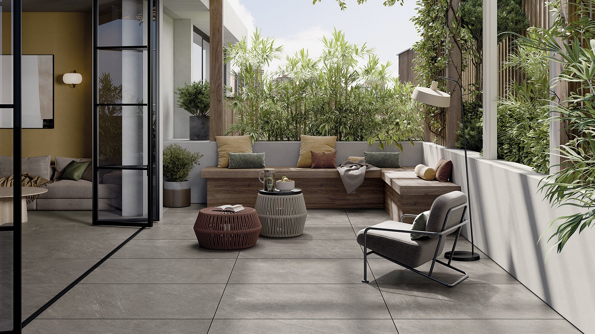 Motley has two sizes and three colors ranging from the light, warm tones of Mediterranean stones to the dark greys of Alpine slates.