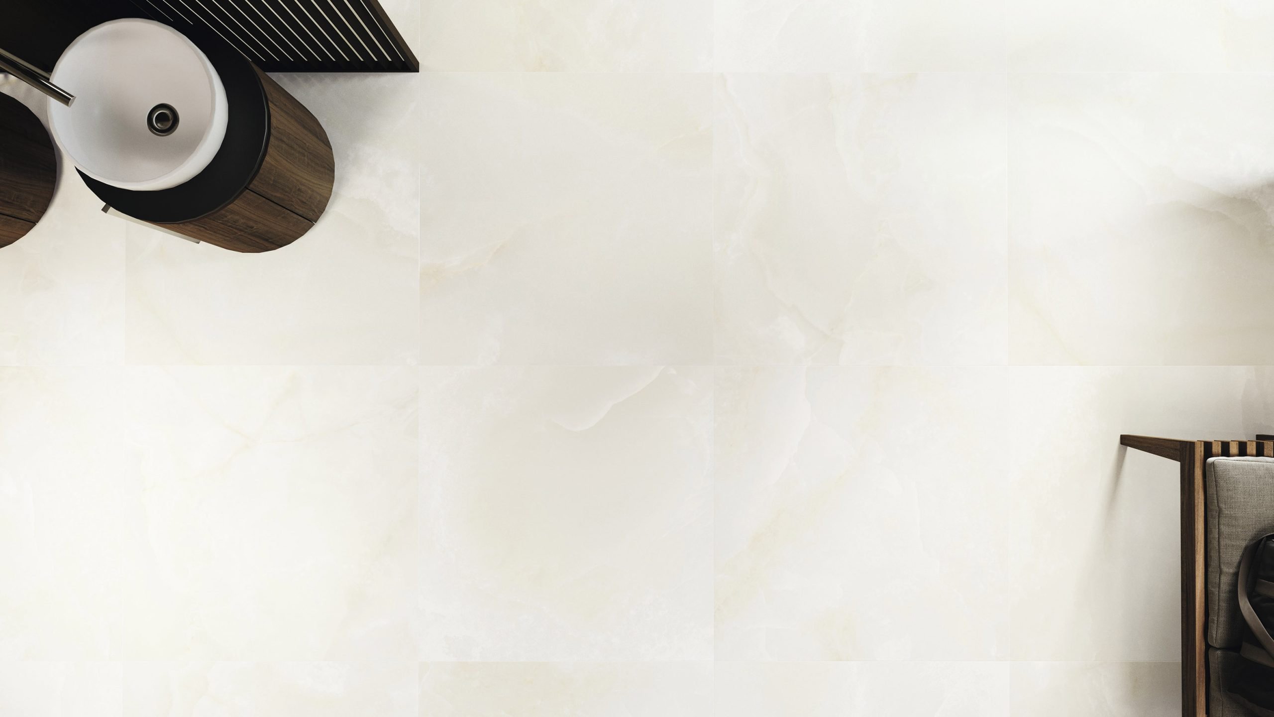 ONIX stands out with its delicate layers of marble veins and 90x90 cm tile size, easy to install, creating seamless spaces that spark endless creativity.
