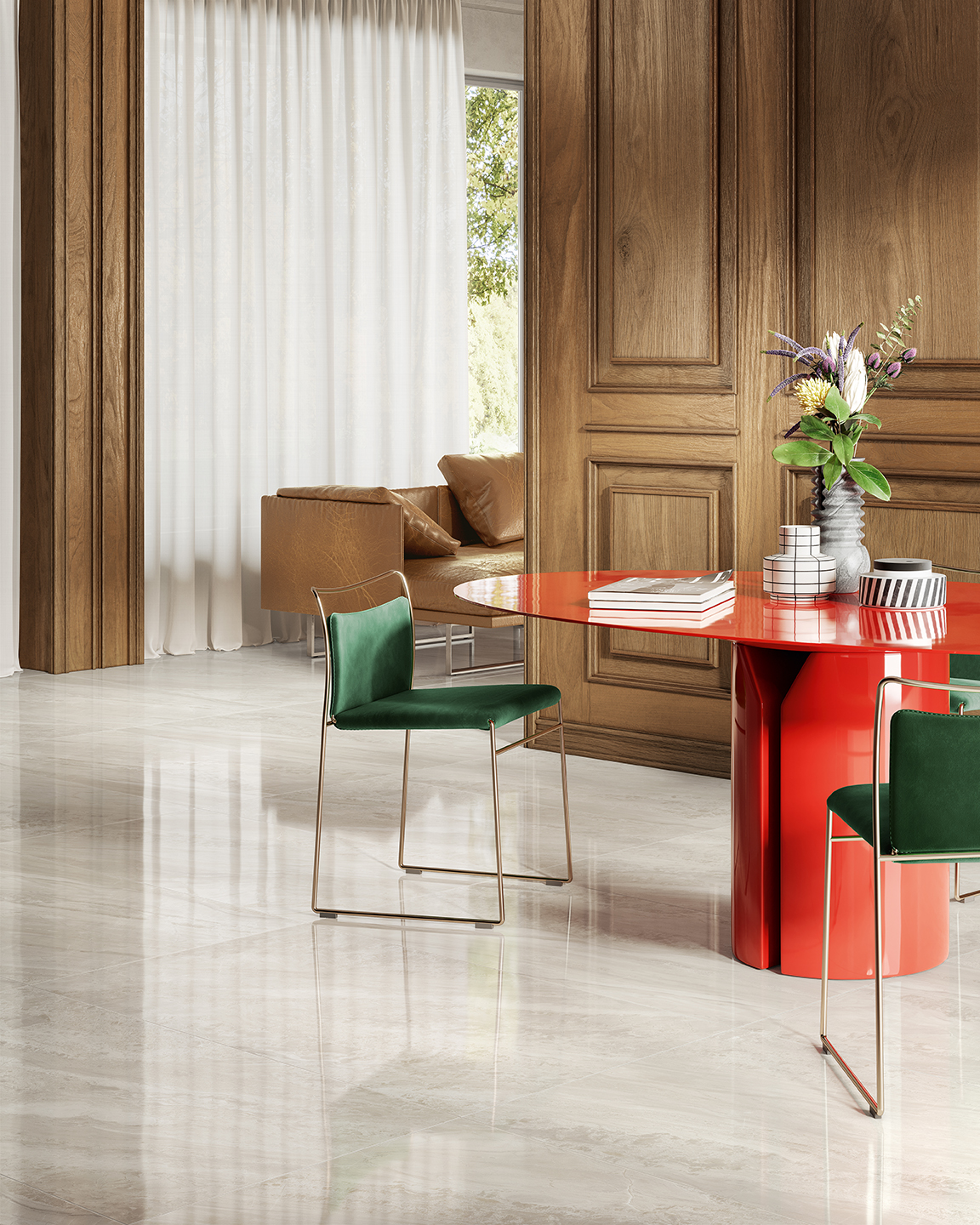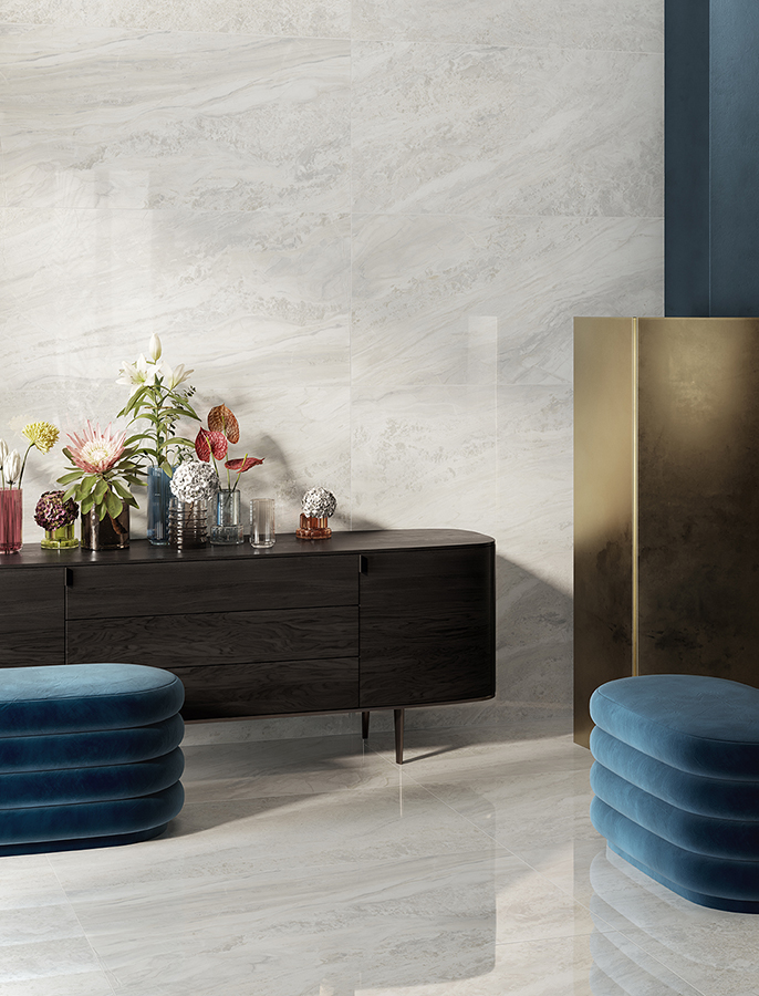 The Paradiso collection features a palette of refined neutral shades, skillfully curated to accentuate the soft tonal transitions of the veining. Paradiso also offers the exclusive Krystal crystal-polished finish, creating an even more striking visual impact within the space.