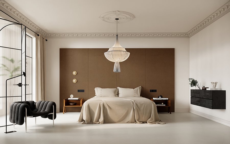 Khác với gạch vân concrete với bề mặt đồng màu và rất phẳng, gạch vân đá tự nhiên ít vân đan xen vẫn giữ được sự đồng đều màu cho không gian thiết kế vẫn sống động của bề mặt nổi của đá trên màu nền cùng tông.