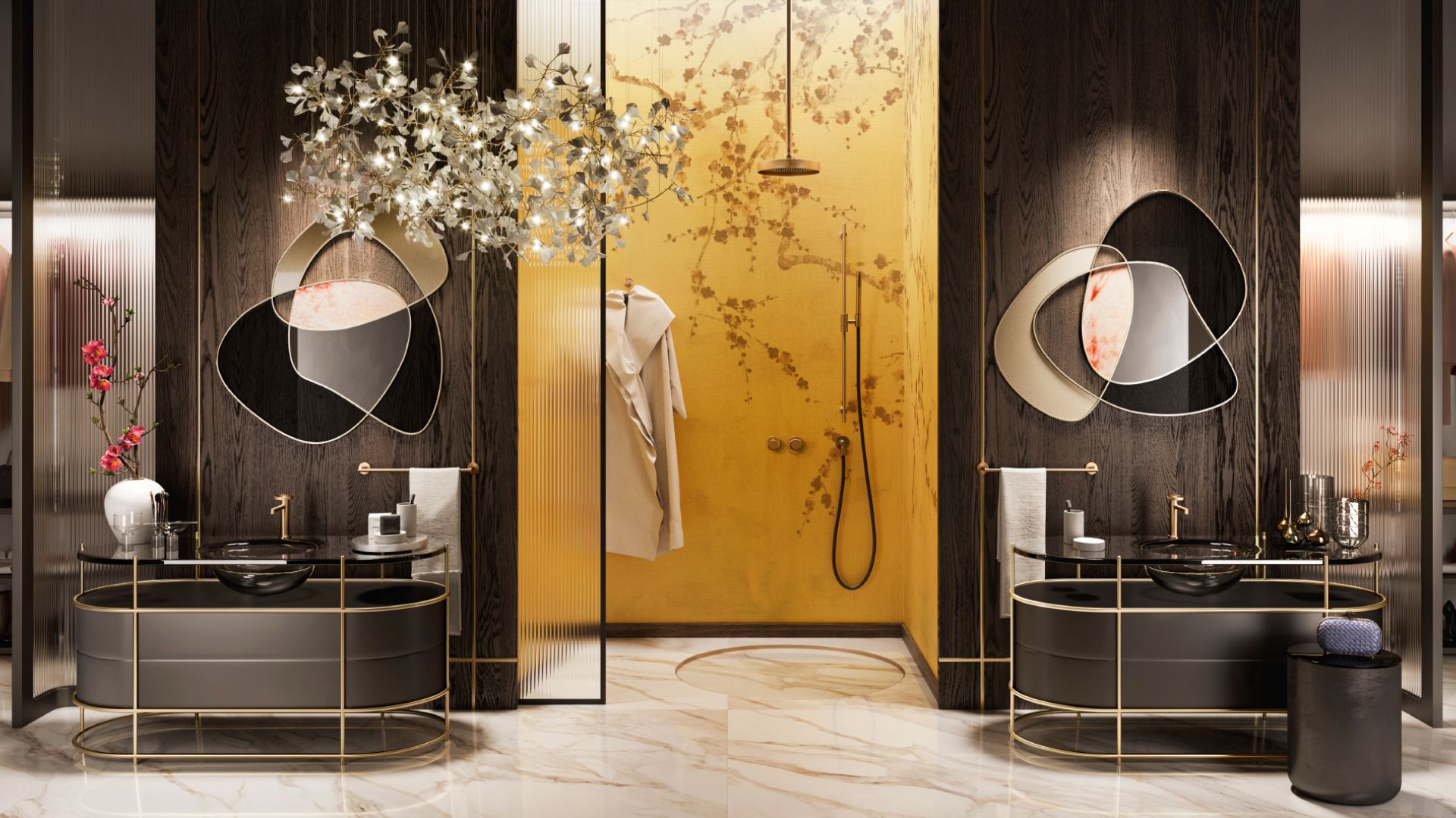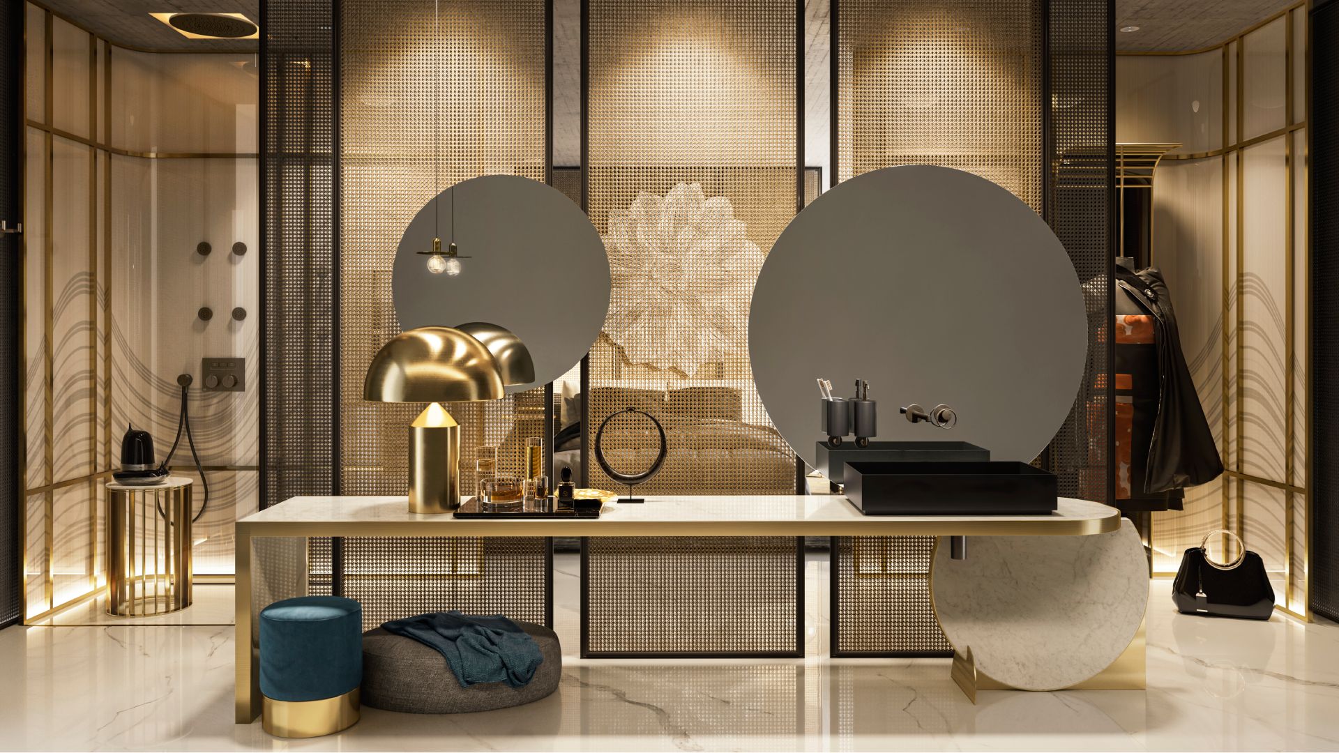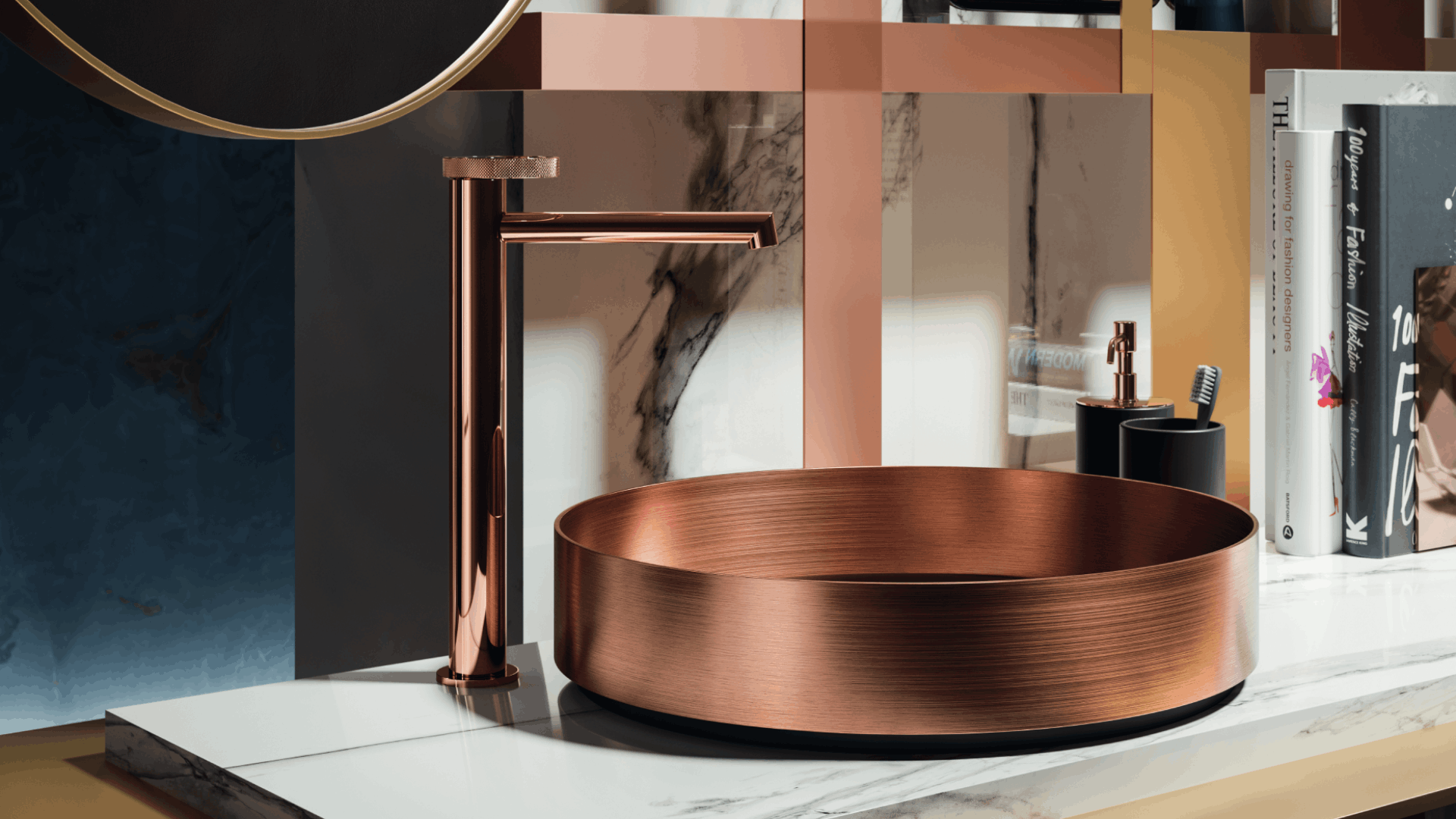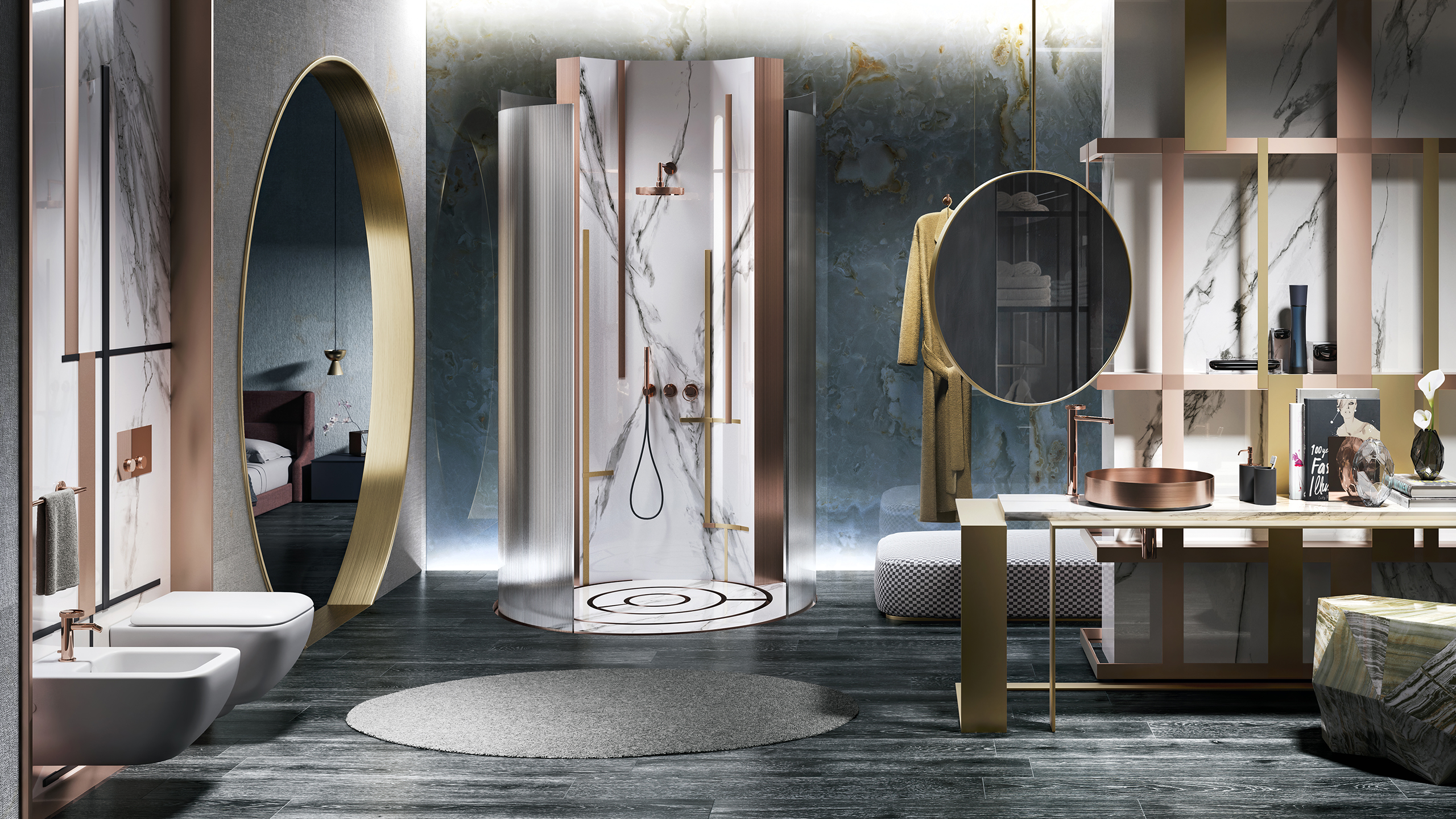 Anello Copper với sắc vàng hồng đầy phong cách sở hữu những đường cong uốn lượn và vẻ đẹp mềm mại nữ tính, kết hợp hài hòa với nội thất calacatta và mang tới sự ấm cúng cho phòng tắm.