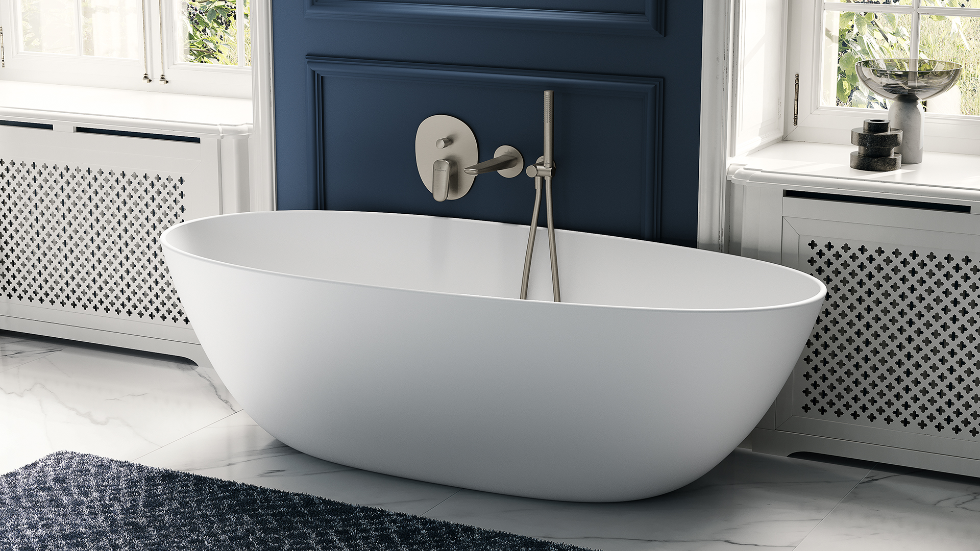 Bồn tắm Antao chế tác từ Quaryl® cao cấp - vật liệu nổi bật với khả năng chống chịu tốt. Hình dáng bất đối xứng tăng cường công thái học, mang đến trải nghiệm thư giãn sâu. Đây là không gian lý tưởng để gia chủ tìm thấy sự bình yên, đắm mình trong làn nước ấm, tái tạo năng lượng sau ngày dài mệt mỏi.