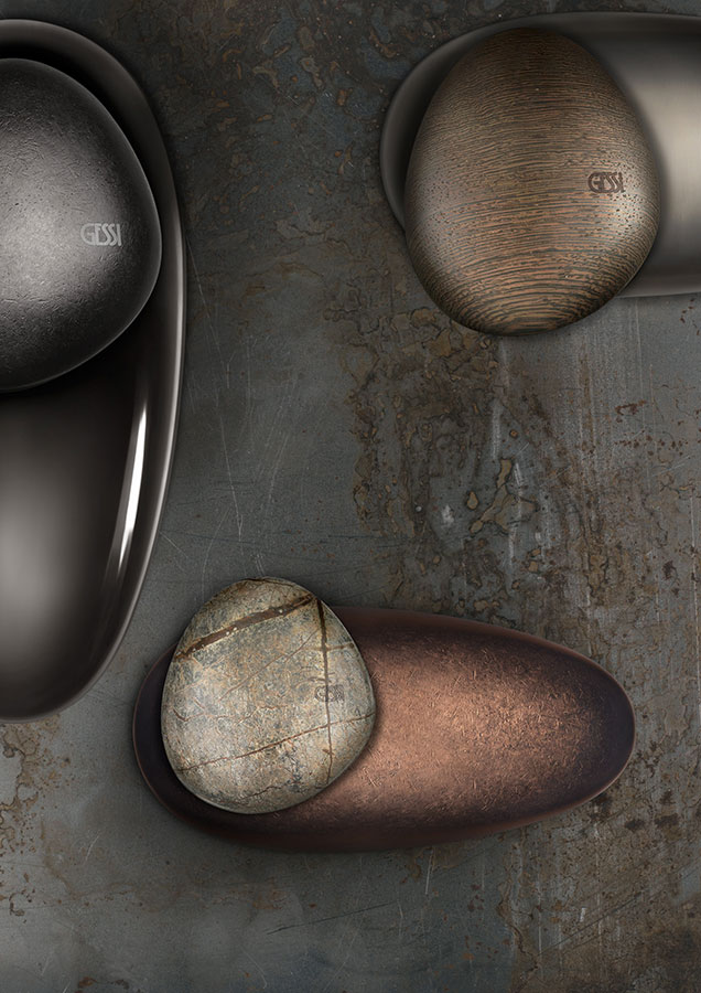 Lấy cảm hứng từ nghệ thuật cân bằng đá, bộ sưu tập Equilibrio thể hiện mối liên kết sâu sắc với nước và năng lượng tạo ra khi những viên đá đạt đến trạng thái cân bằng. Nhà sáng tạo Marsel Lesko cùng nhà thiết kế Giuseppe Maurizio Scutella đã chuyển hóa ý niệm này thành hình thái sản phẩm mang tính biểu tượng – hai viên đá công thái học chồng lên nhau một cách tinh tế.
