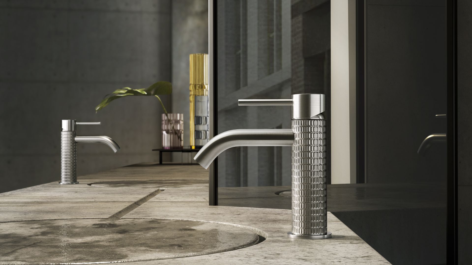 Gessi ra đời ở Valsesia - thủ phủ dệt may của Ý, nơi đã đặt nền móng cho nền công nghiệp thời trang bùng nổ của Ý. Trame là lời tri ân của Gessi đến vùng đất này. Các đường kẻ của Trame bao quanh thân vòi, trông như một cuộn chỉ mành, thể hiện nét thủ công rõ rệt. Họa tiết Intreccio sở hữu các gam màu: Warm Bronze Brushed, Steel Brushed, Copper Brushed, Black Metal Brushed, Brass Brushed.