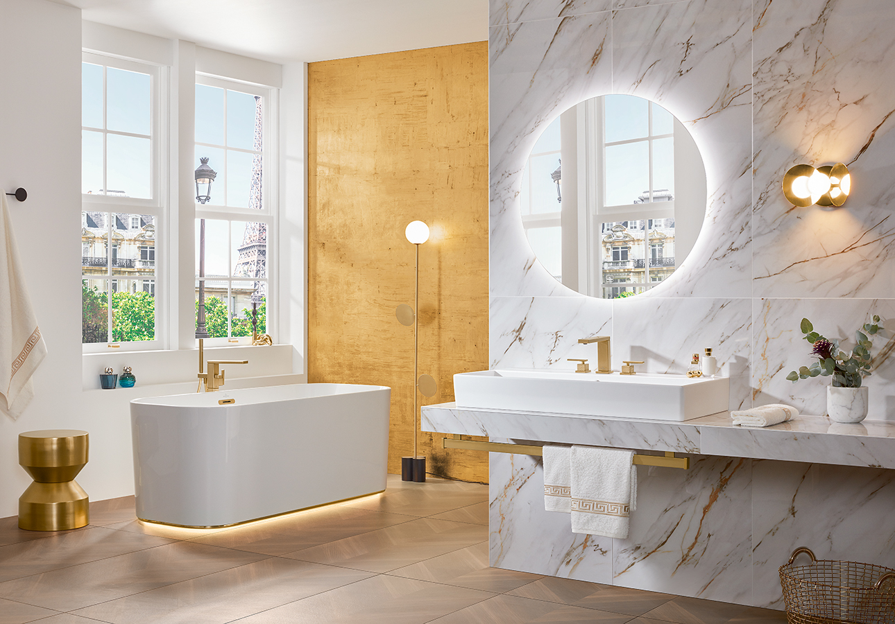 Một phần không thể thiếu trong câu chuyện thành công của thương hiệu Villeroy & Boch chính là “gạch Mettlach” - gạch mosaics đã tạo nên tiếng vang một thời cho Villeroy & Boch. Hoa văn hình thoi lấy cảm hứng từ mẫu gạch này được khắc tỉ mỉ, tạo điểm nhấn cho bộ vòi Mettlach.
