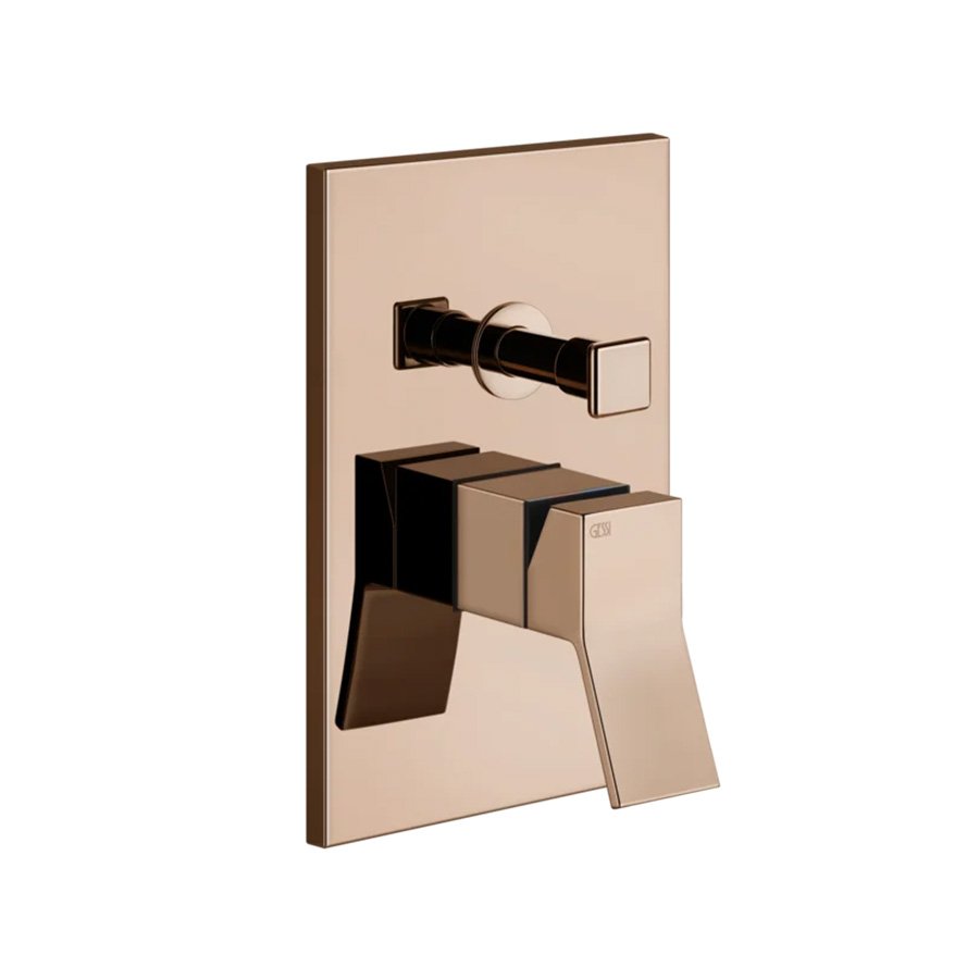 Mặt nạ điều khiển sen tắm hai chức năng gắn tường 53079_030 Rettangolo K Gessi nổi bật với thiết kế tối giản, được chế tác từ đồng thau màu Copper, phủ lớp hoàn thiện PVD bền bỉ. Sản phẩm có khả năng cấp nước cho hai đường nước độc lập, hoạt động mượt mà và bền bỉ nhờ sử dụng lõi trộn Ø35 chất lượng.