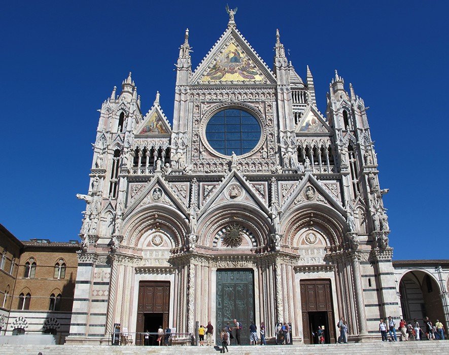 Có niên đại từ thế kỷ 13, nhà thờ lớn thời trung cổ này được thiết kế một phần bởi Nicola Pisano. Một trong những điểm ngoạn mục nhất của nhà thờ này chính là thư viện, được gọi là Piccolomini, nơi có một loạt các bức bích họa từ thế kỷ 16 được bảo tồn một cách cẩn thận và tỉ mỉ bởi Pinturicchio - họa sĩ người Ý thời Phục hưng.