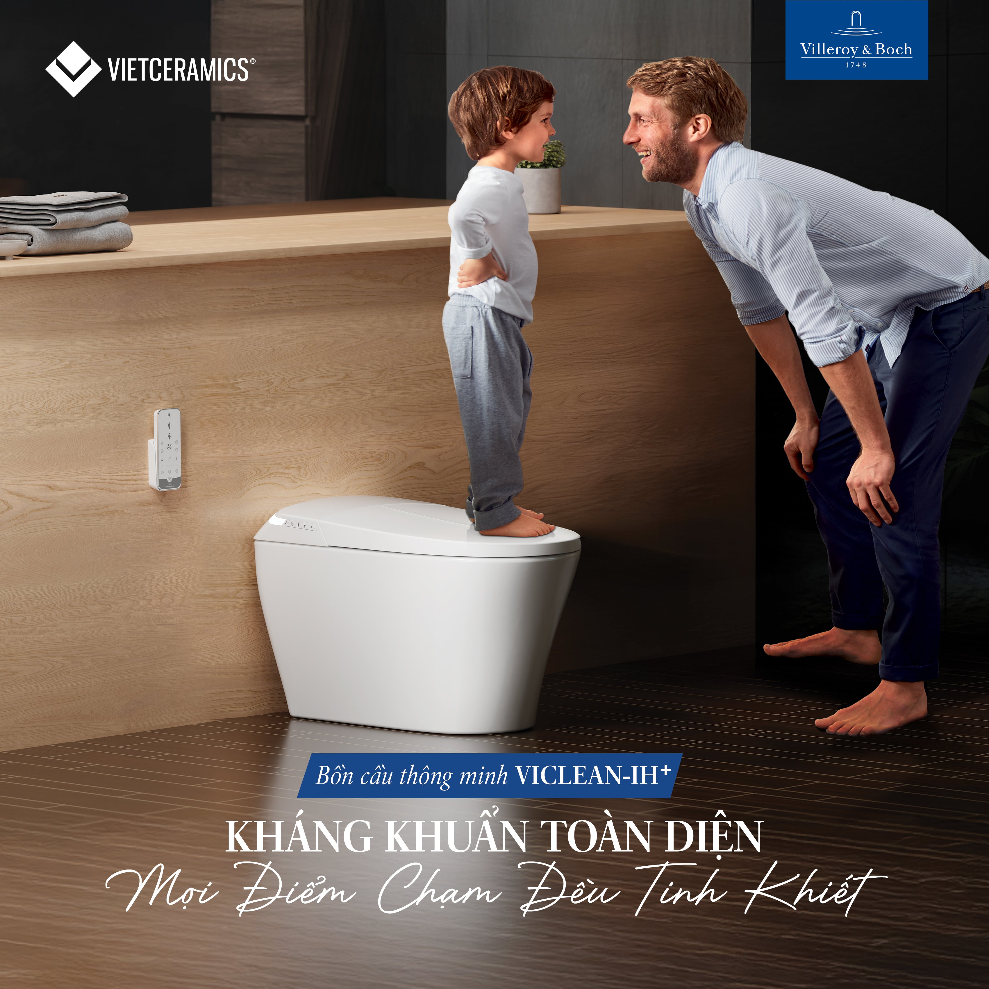 Được trang bị tính năng kháng khuẩn hơn 99.9% cho nước và cho toàn bộ bề mặt, VICLEAN-IH+ mời gia chủ đến với kỷ nguyên vệ sinh thông minh và sạch sẽ tuyệt đối: